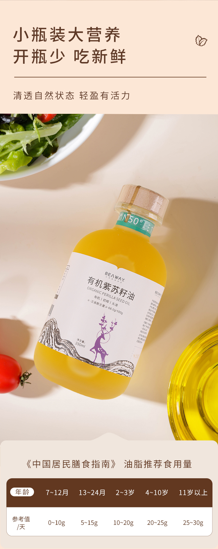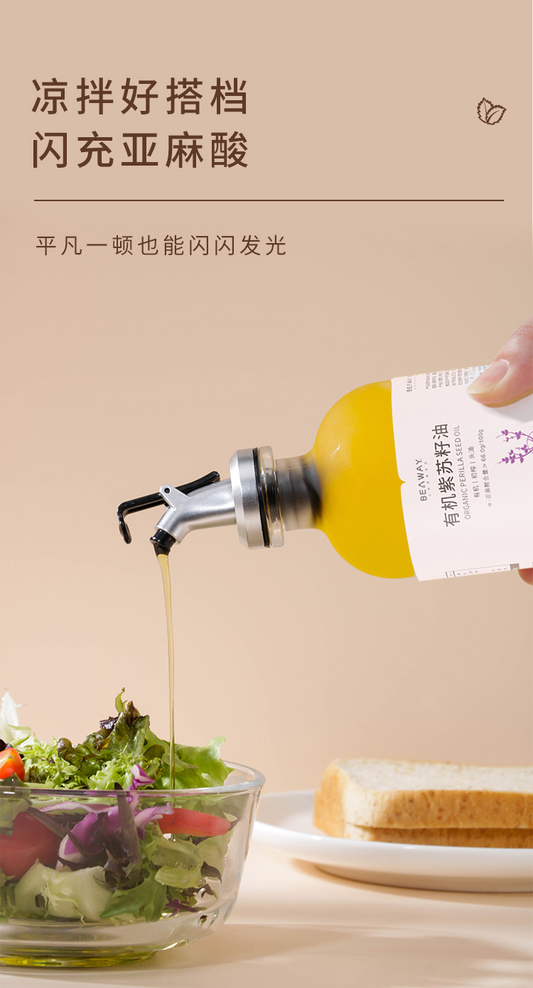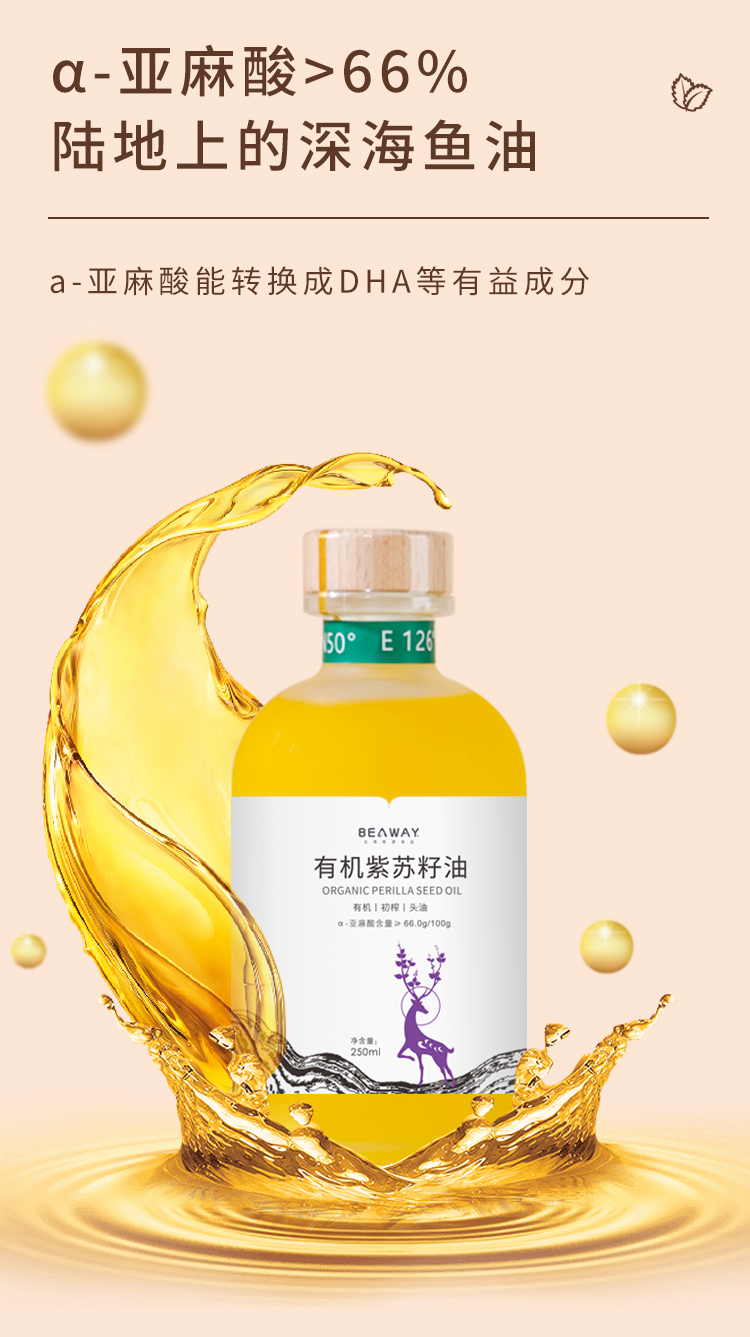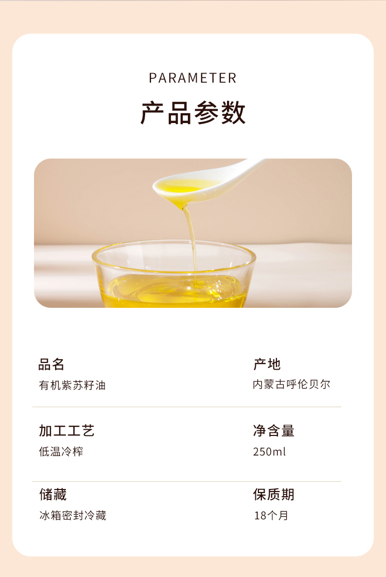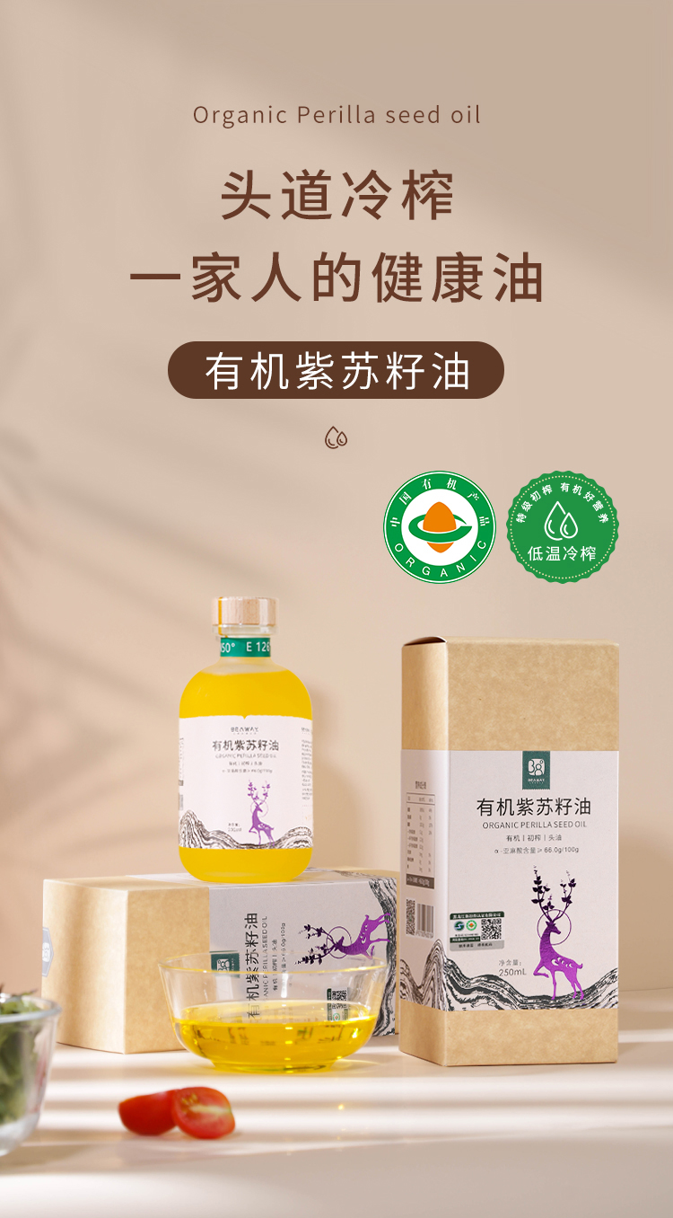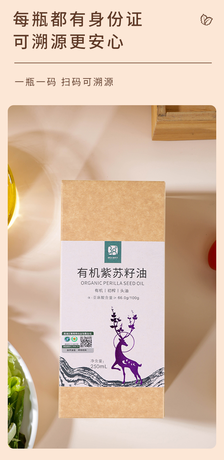 北纬纯净食品|38°有机紫苏籽油低温物理压榨头道油凉拌食用油250ml