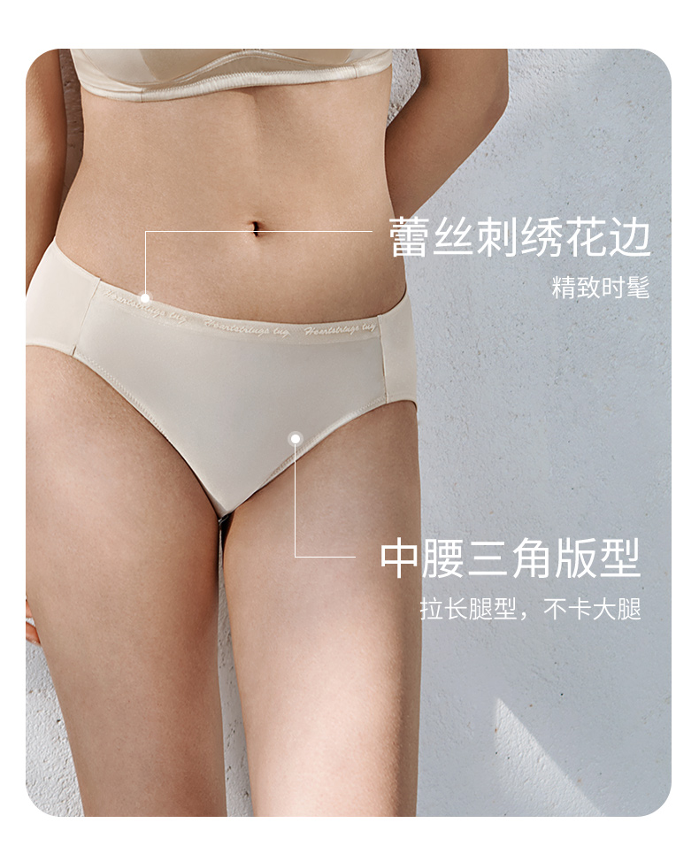金三塔桑蚕丝缎面拼接蕾丝刺绣花边女士内裤(私密物品不支持退换) NZFFA201