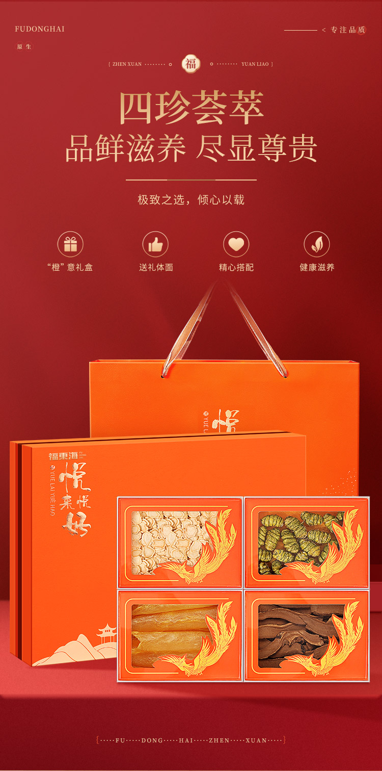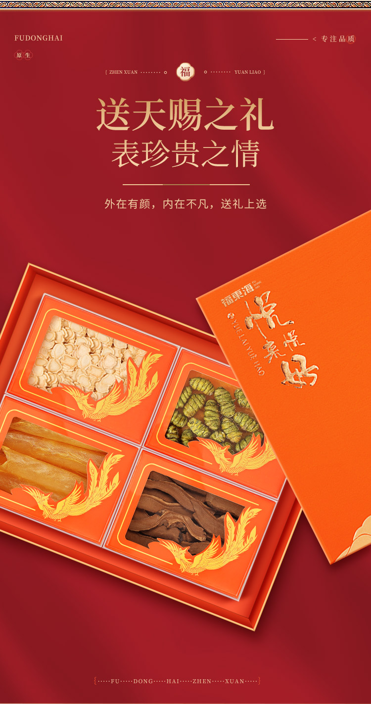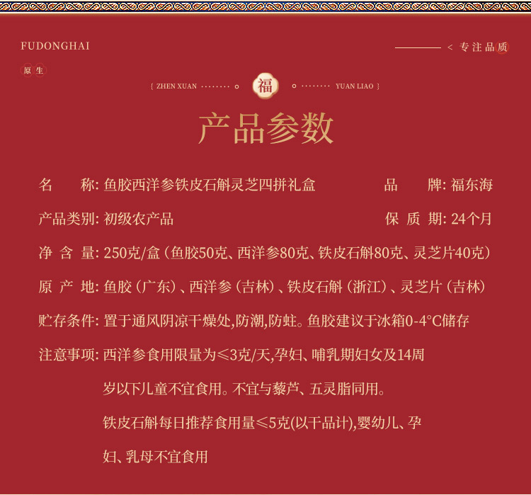 福东海 黄花鱼胶西洋参铁皮石斛灵芝四拼250克 【春节年货】花胶海味特产干货滋补营养品 高档送礼佳品礼盒