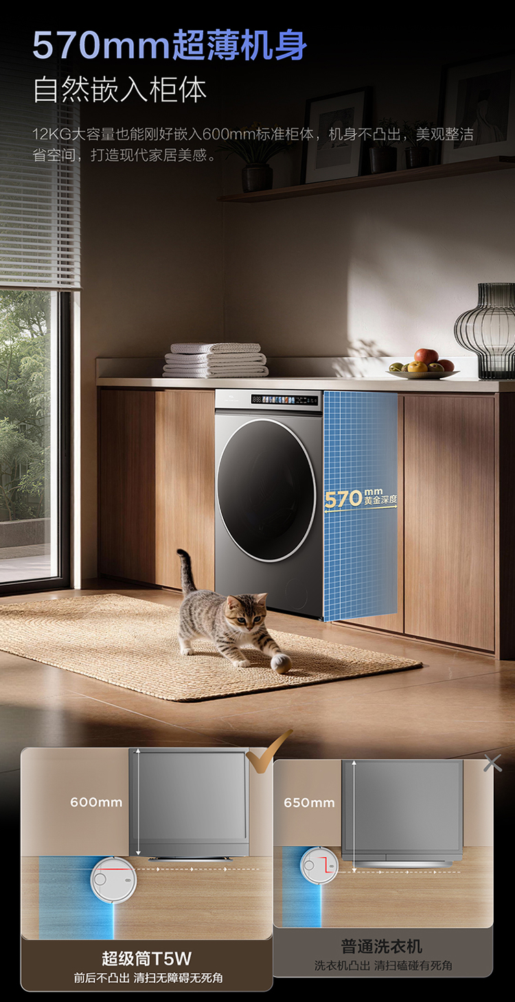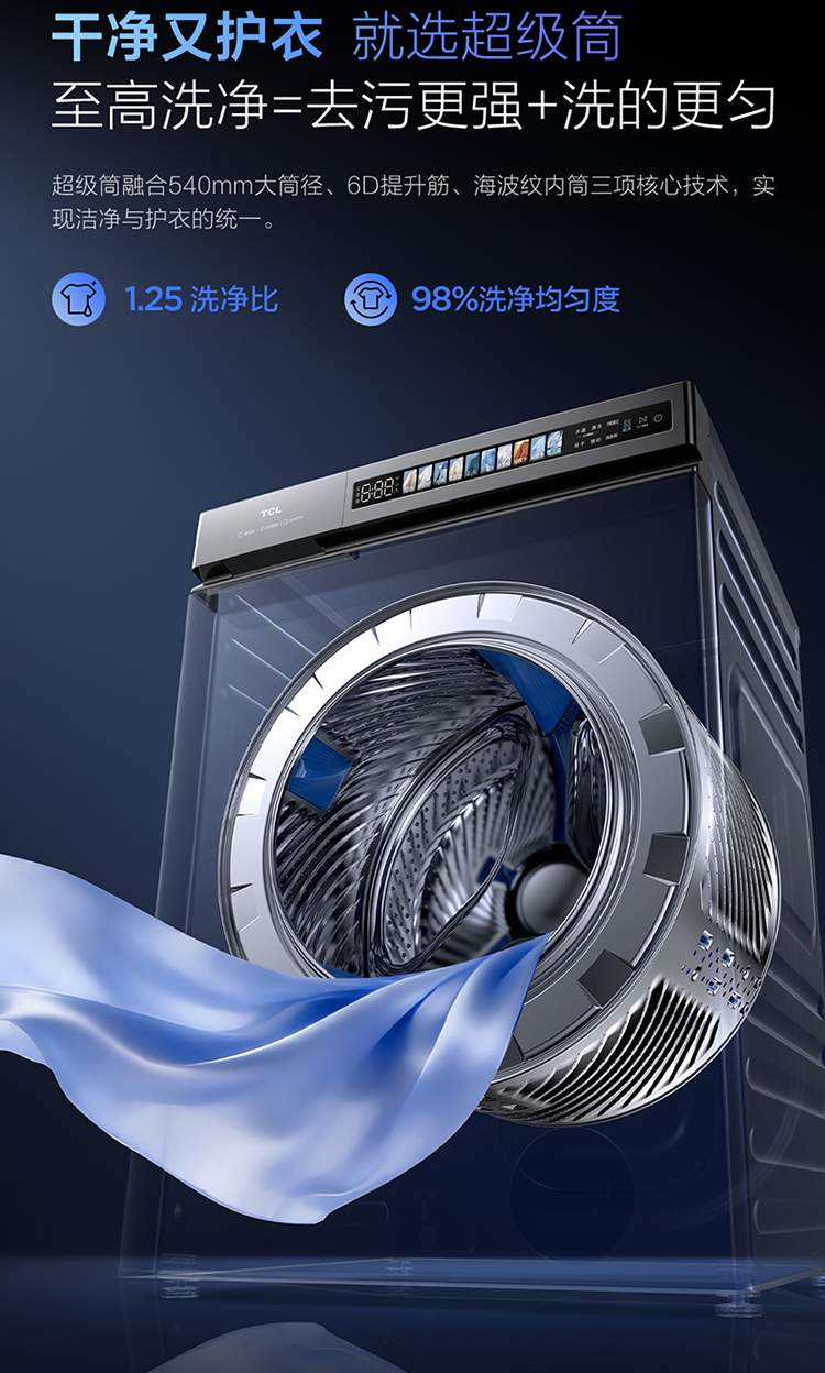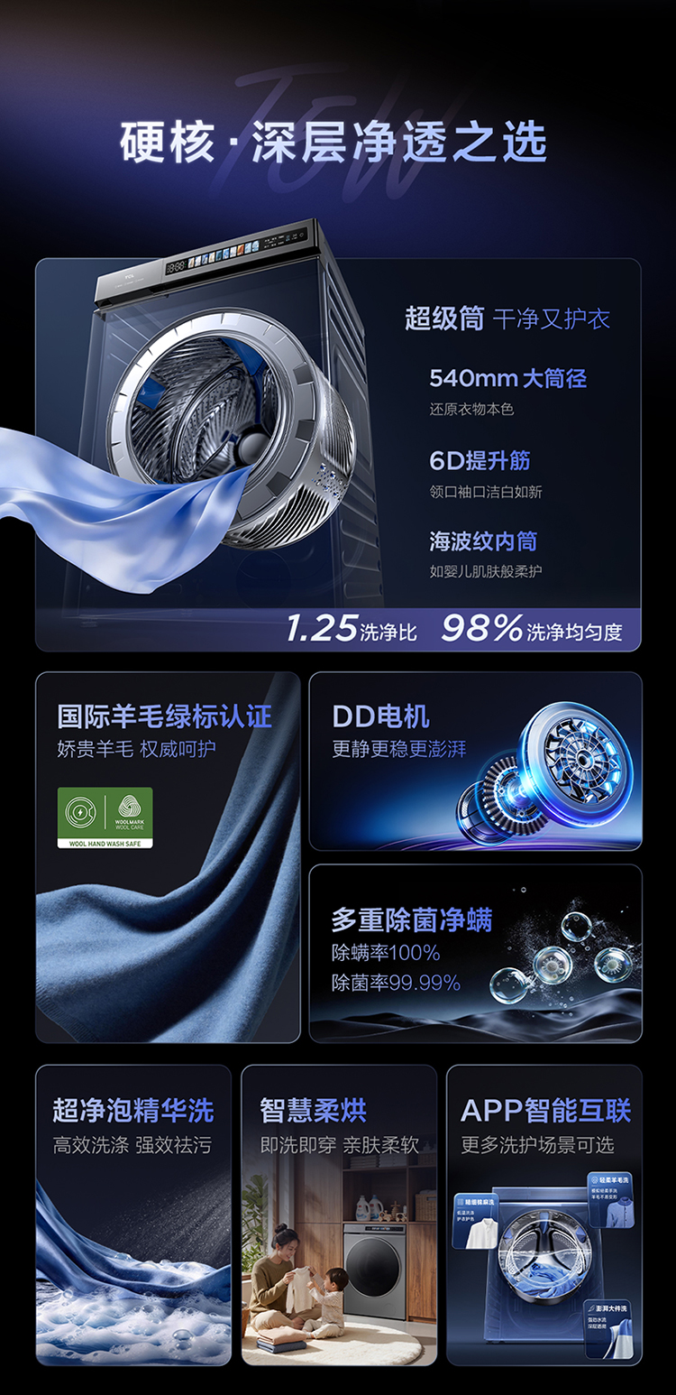【新品上市】TCL超级筒滚筒洗衣机全自动家用12KG直驱羊毛绿标护衣G120T5W-HDIS
