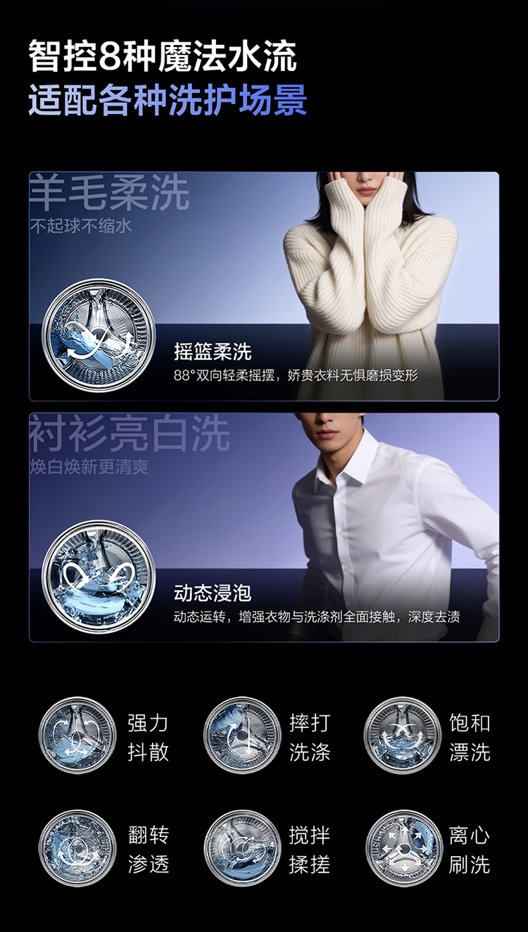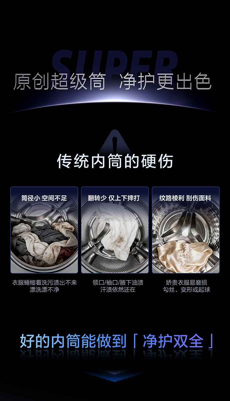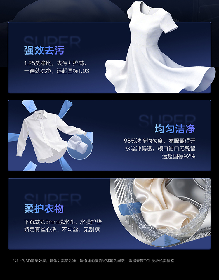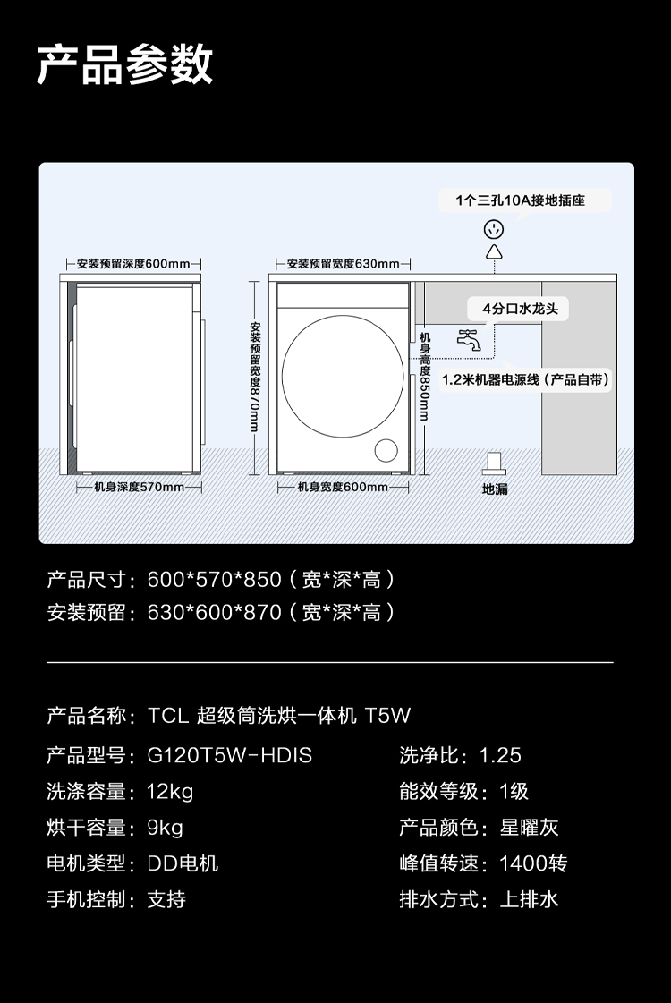 【新品上市】TCL超级筒滚筒洗衣机全自动家用12KG直驱羊毛绿标护衣G120T5W-HDIS