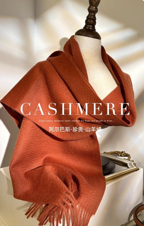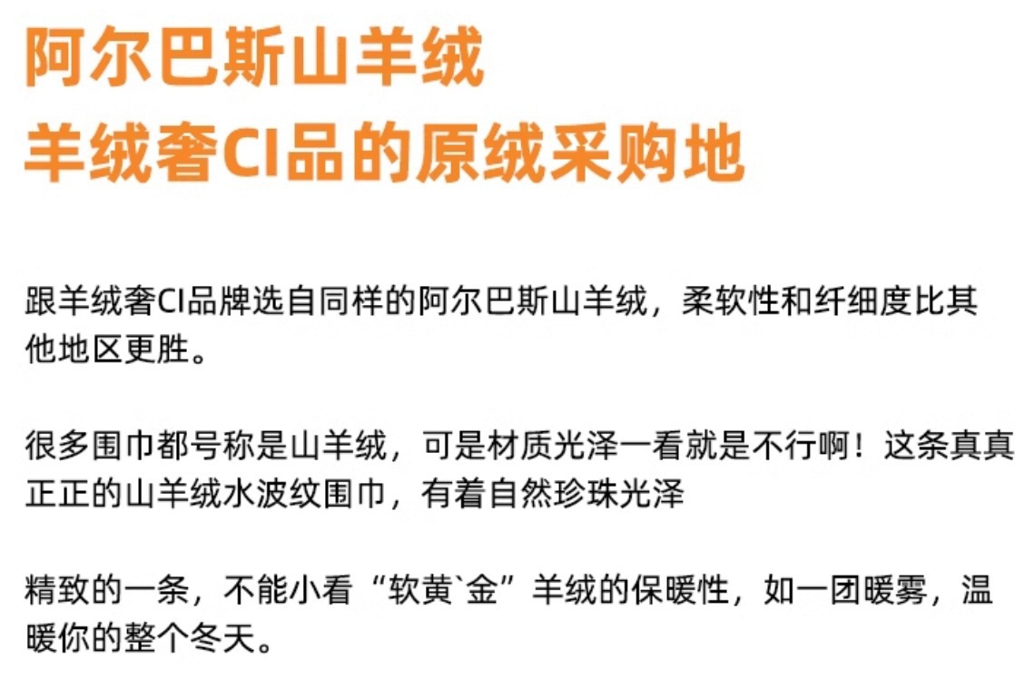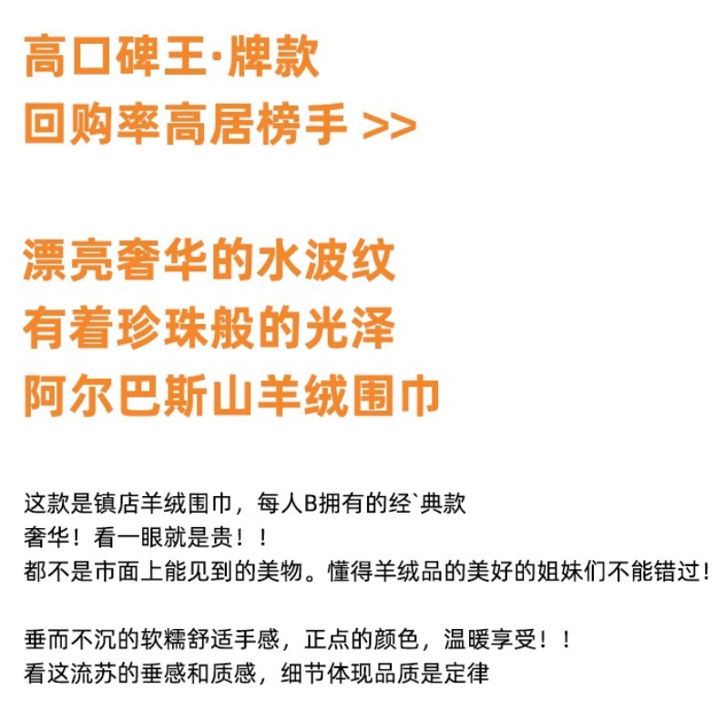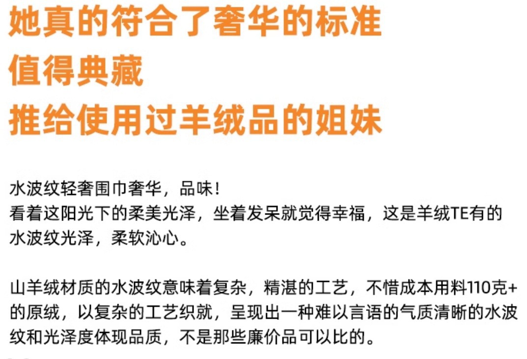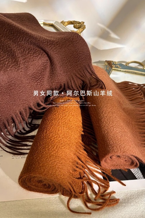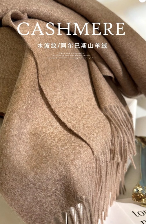 殿堂级!2025阿尔巴斯纯山羊绒围巾冬季女水波纹情侣窄版纯色保暖围脖!