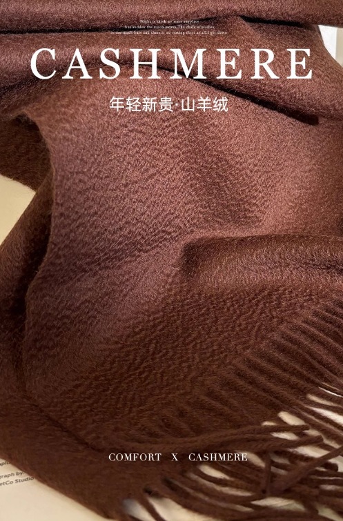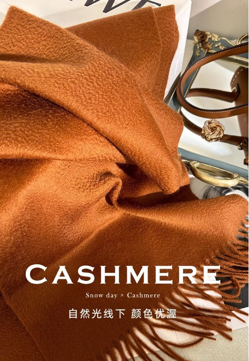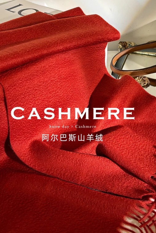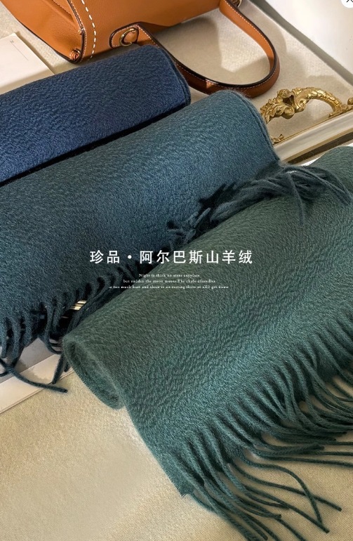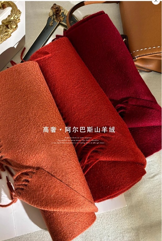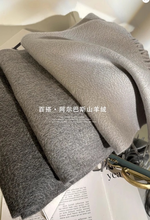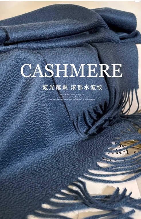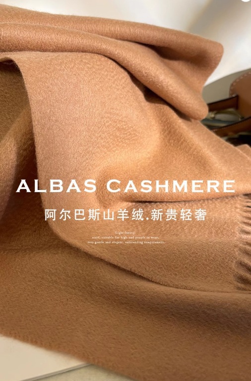 殿堂级!2025阿尔巴斯纯山羊绒围巾冬季女水波纹情侣窄版纯色保暖围脖!