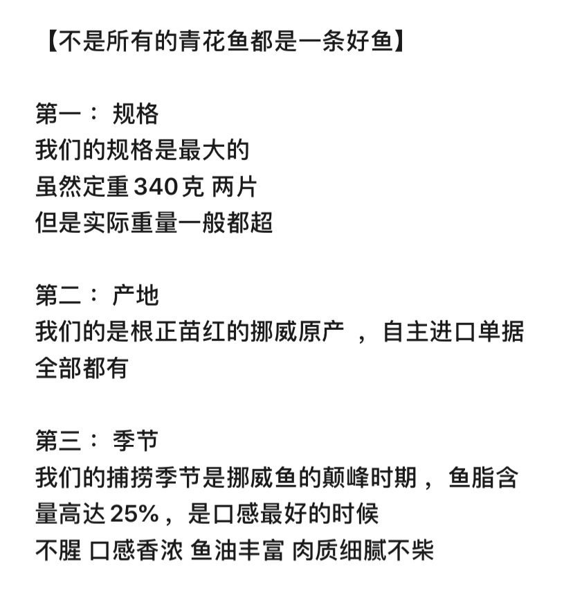 【下单后48小时左右发货】挪威进口深海 冷冻青花鱼 2袋4片 170g左右/片 夏季会化介意勿拍。