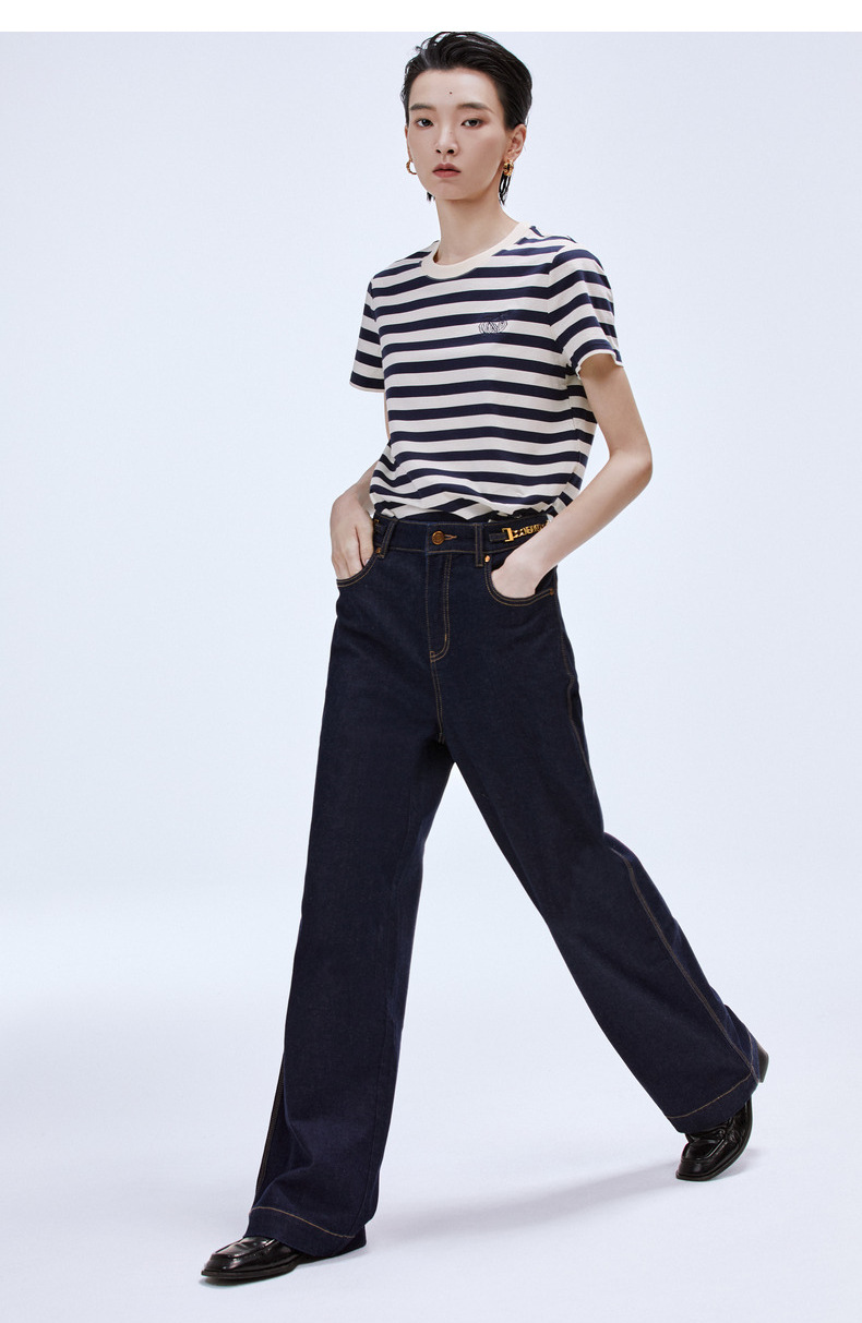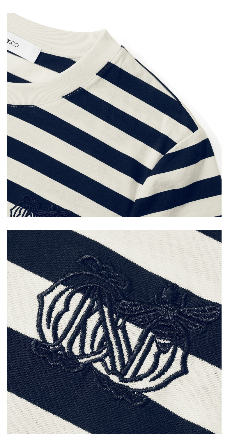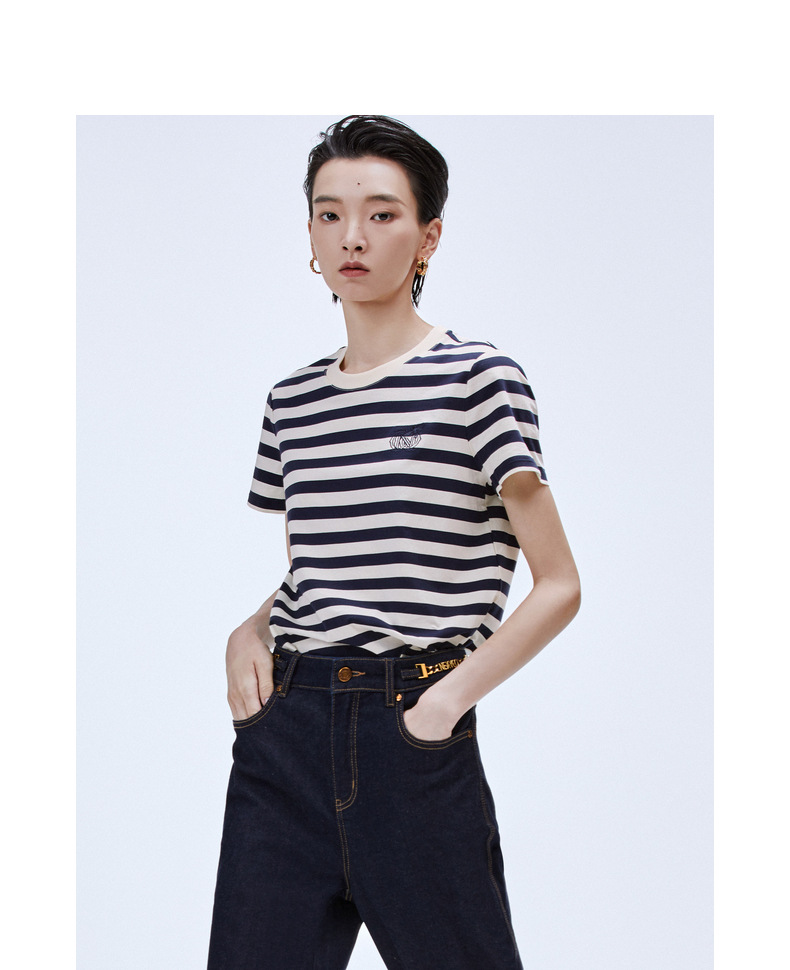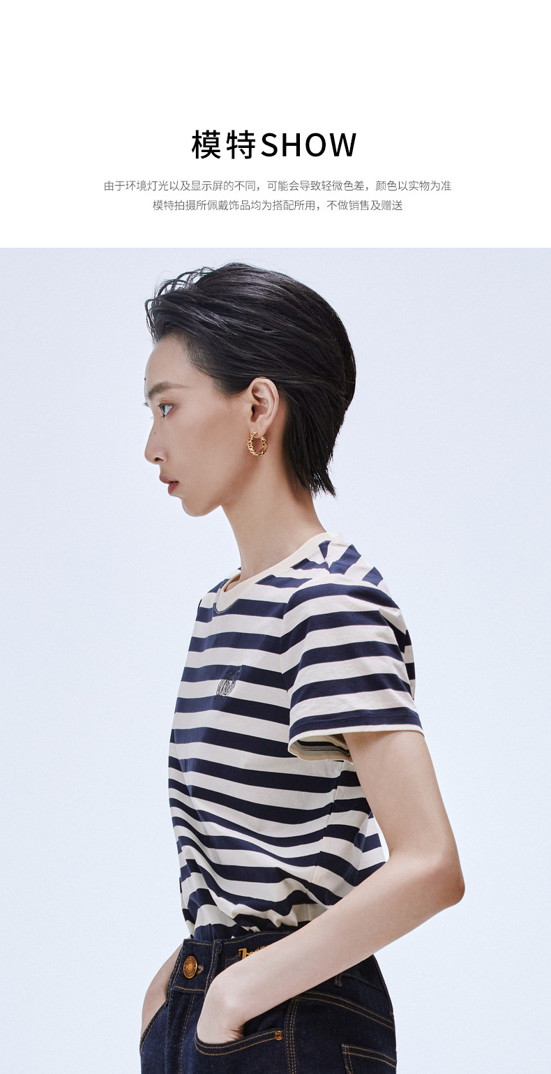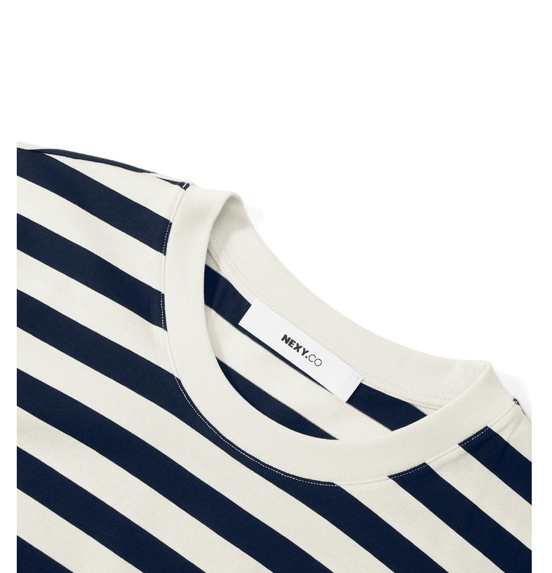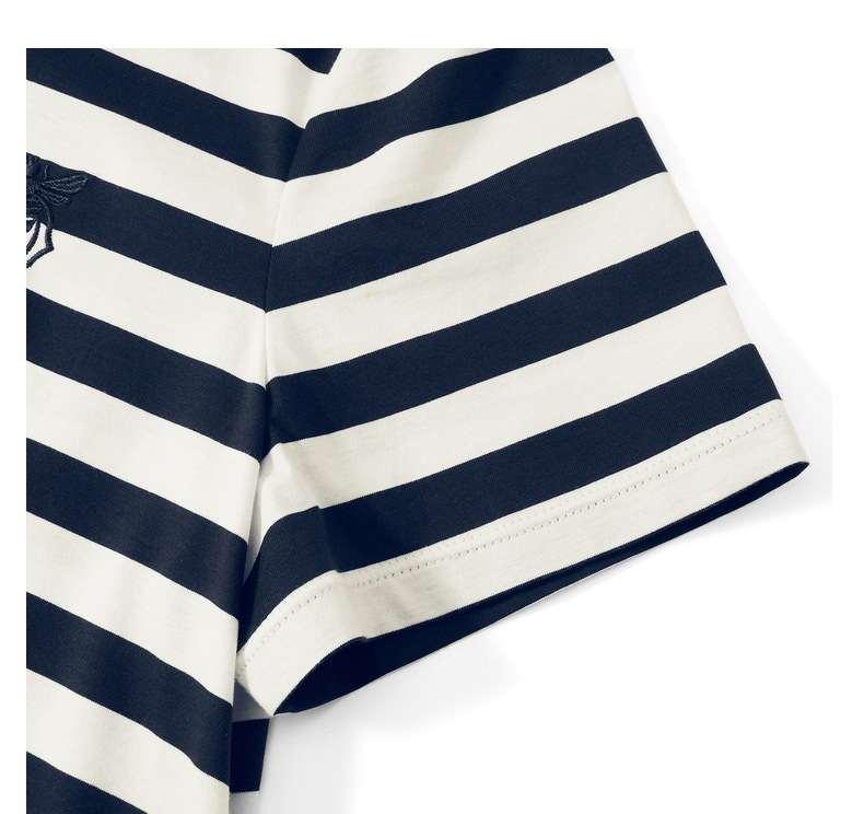 商场同款!2025夏季航海系经典条纹长绒棉短袖圆领T恤!