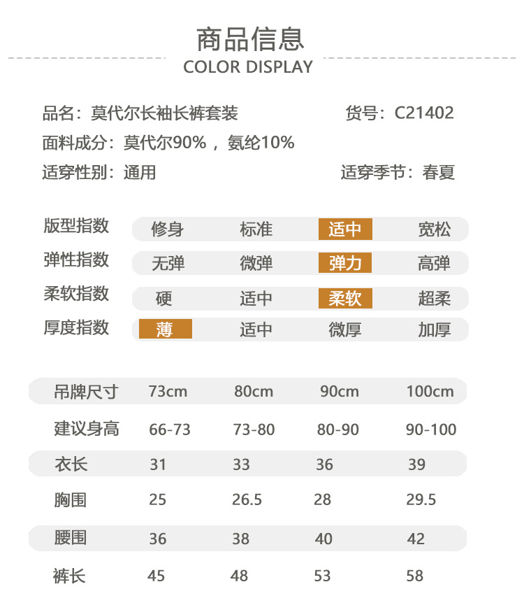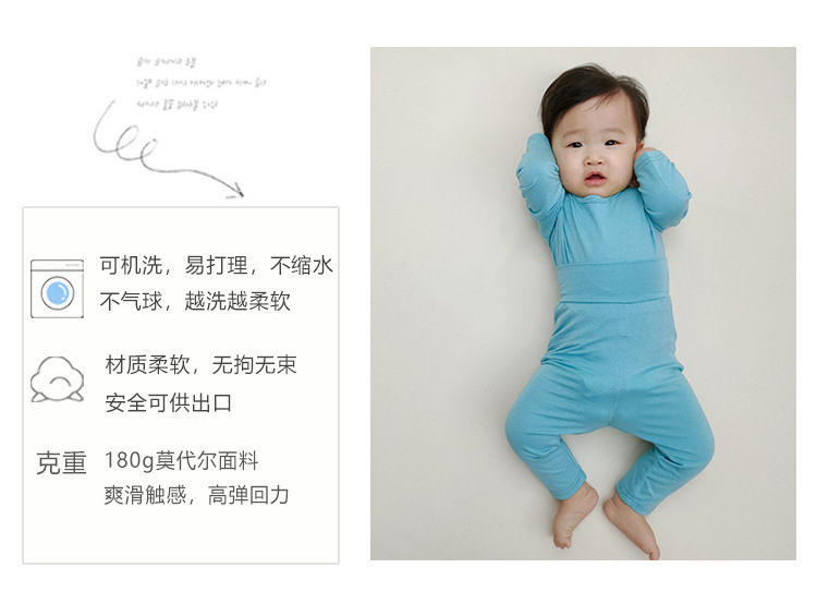 【弹柔轻薄 高腰护肚】婴儿套装莫代尔棉睡衣长袖 宝宝高腰护肚家居服 新生儿空调服