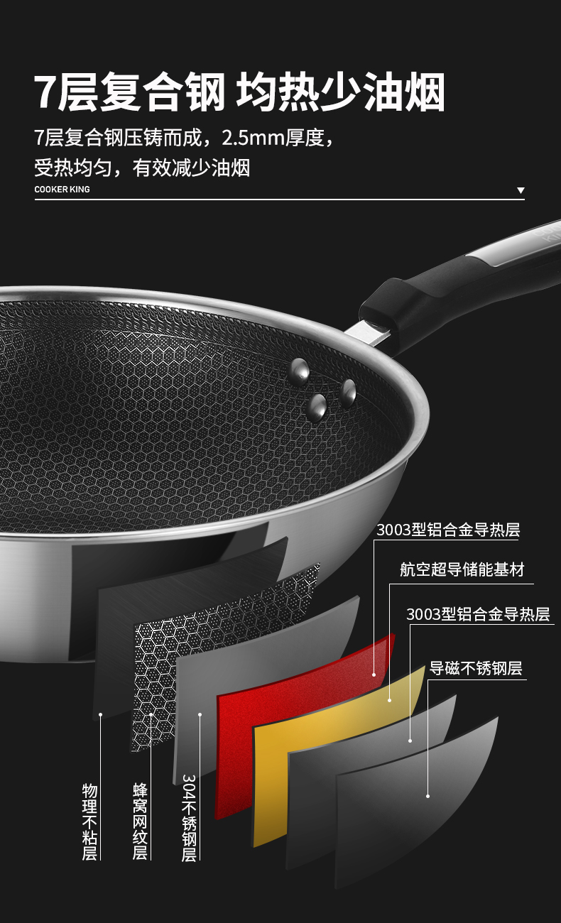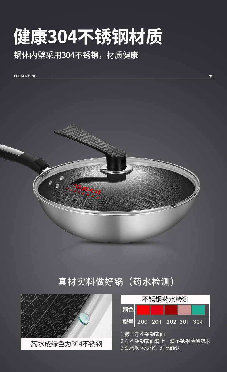 炊大皇不粘锅32/34cm家用304不锈钢炒菜锅炒锅明火电磁炉通用