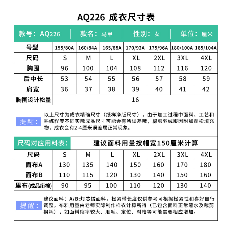 裁缝学苑AQ226中式禅意棉马夹马甲纸样女装坎肩外套上衣样板