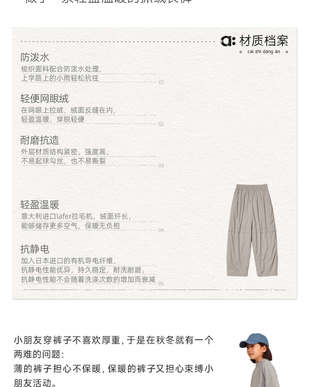 【秋Vol.2】allblu幼岚【轻便抓绒长裤】儿童裤子男童女童25秋新款A类长裤ZY