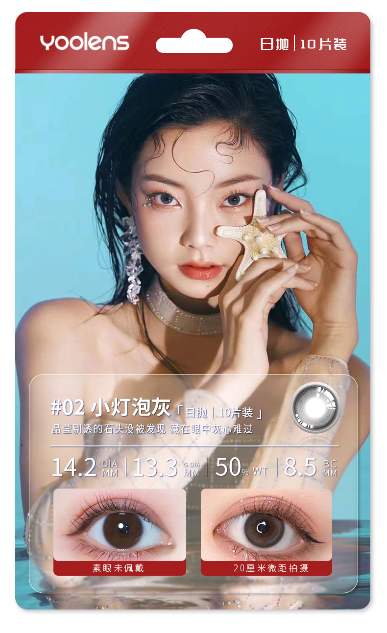 迷雾泡泡灰色日抛美瞳2片装14.5大直径 YR07 不同度数拍二