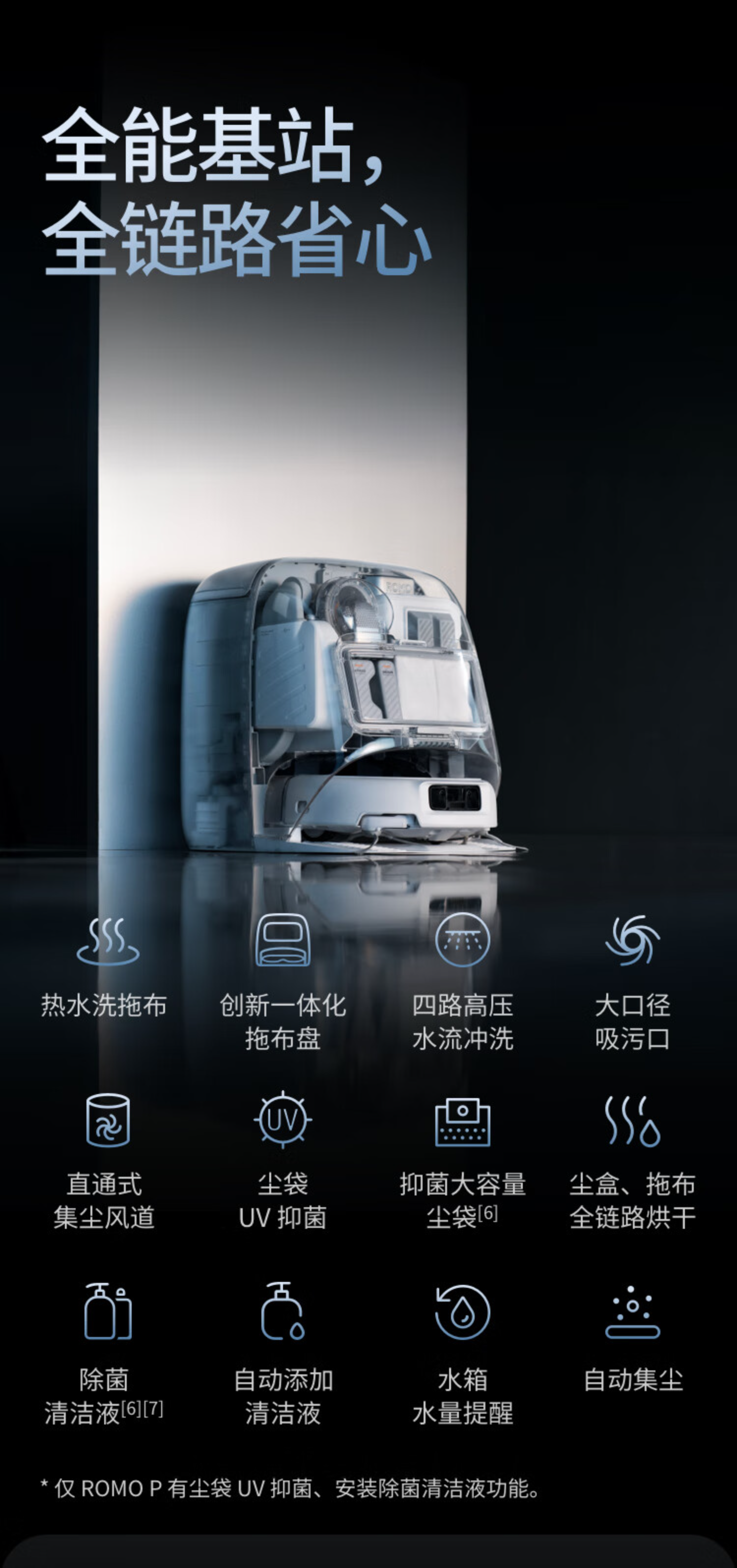 大疆DJI ROMO 新品旗舰扫地机器人家用免维护自清洁智能避障扫拖一体洗地机