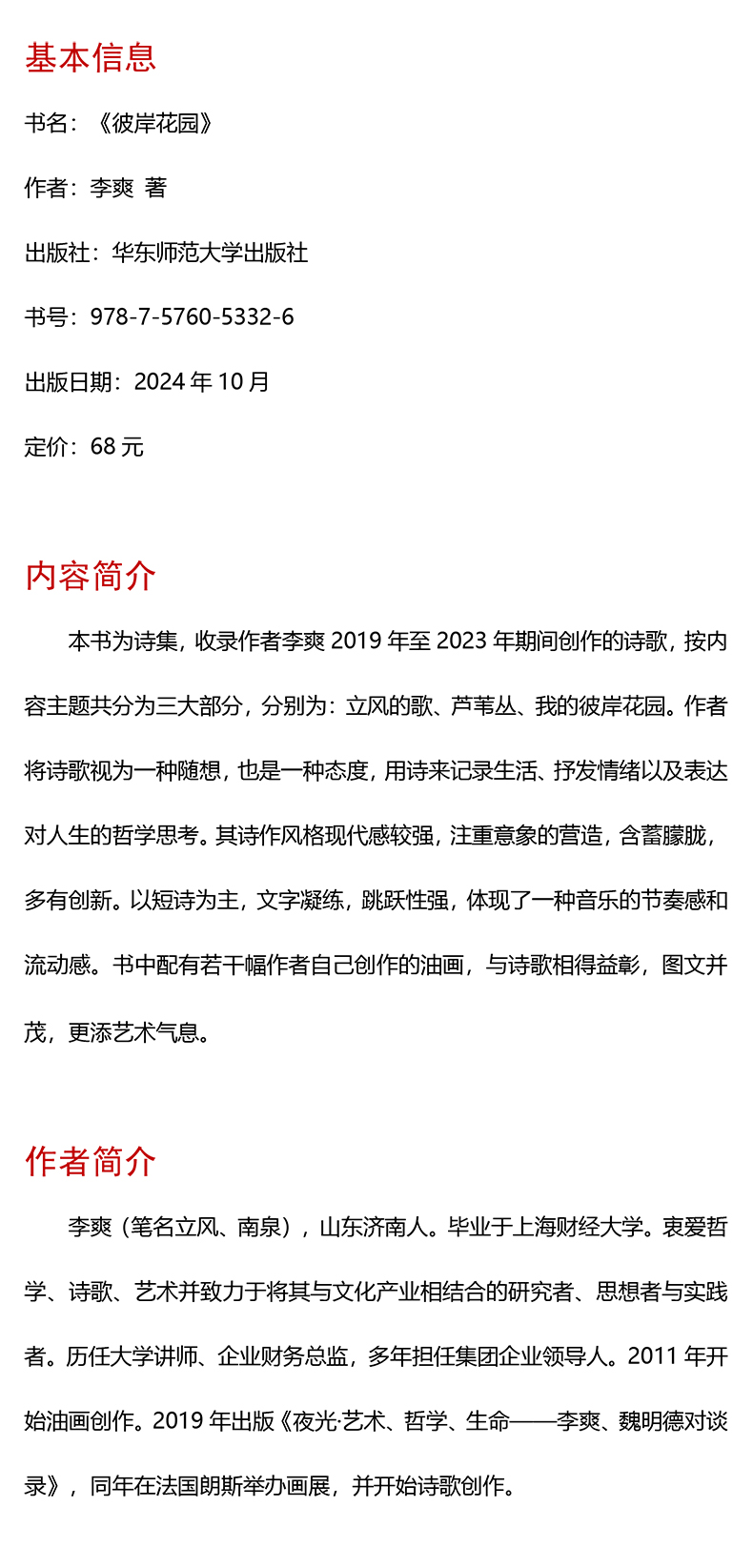 彼岸花园 李爽 诗集 记录生活 人生哲学思考