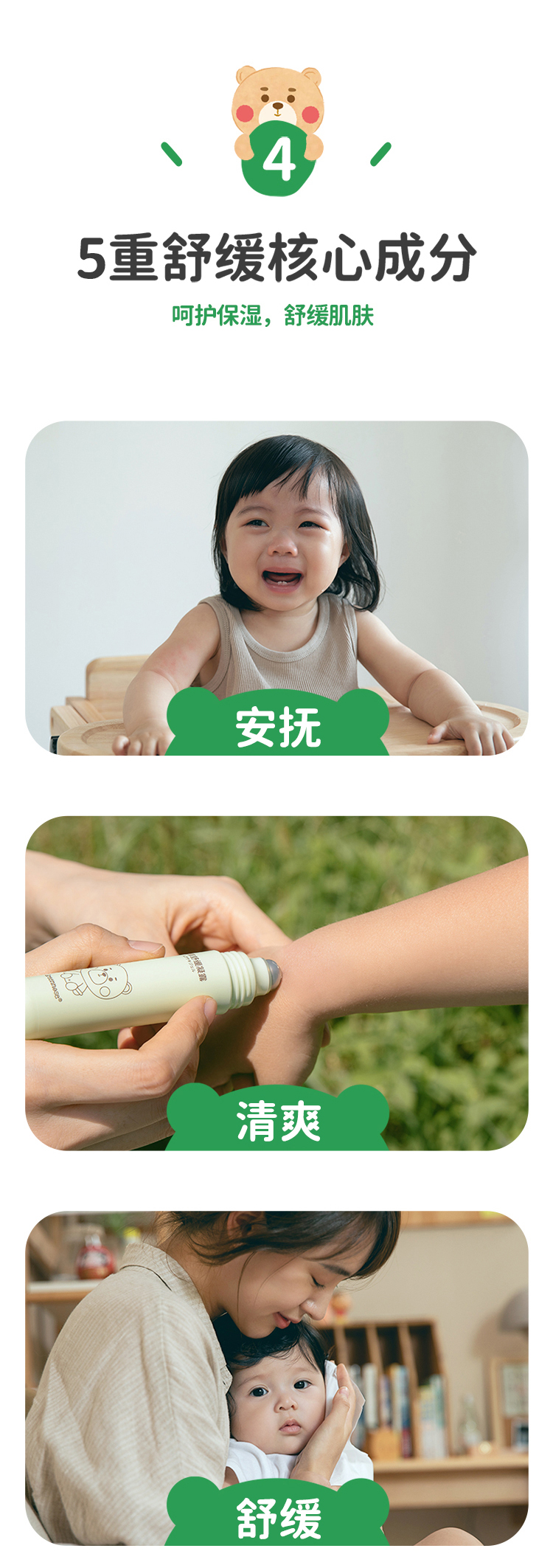 日本绿鼻子婴儿童止痒凝露蚊虫叮咬紫草止痒膏滚珠2.6g/支