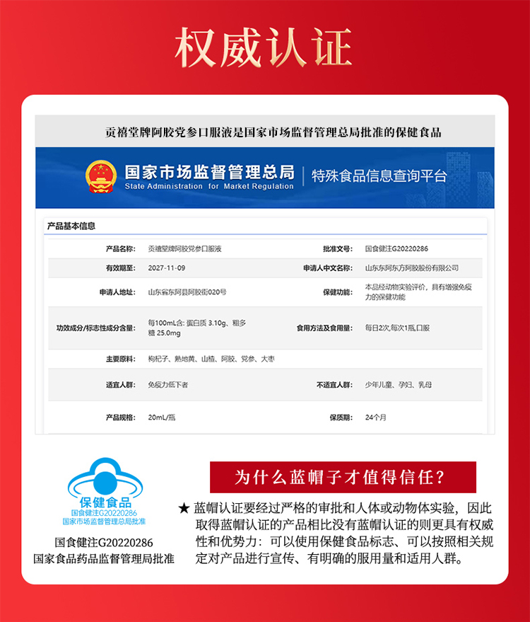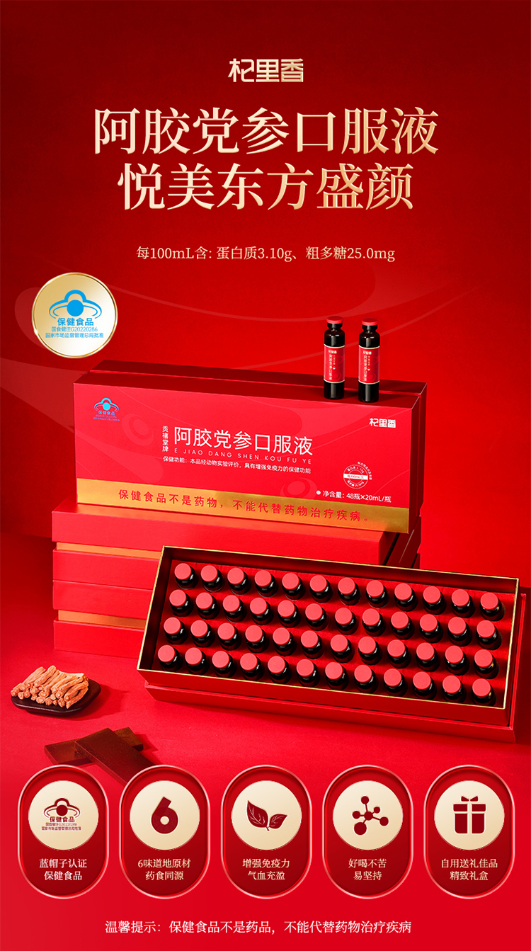 【冬季滋补】杞里香960ml礼盒贡禧堂牌阿胶党参口服液,蓝帽保健品认证 增强免疫力,枸杞子熟地黄山楂阿胶党参大枣送礼送爸妈送老婆送闺蜜元气满满面若桃花