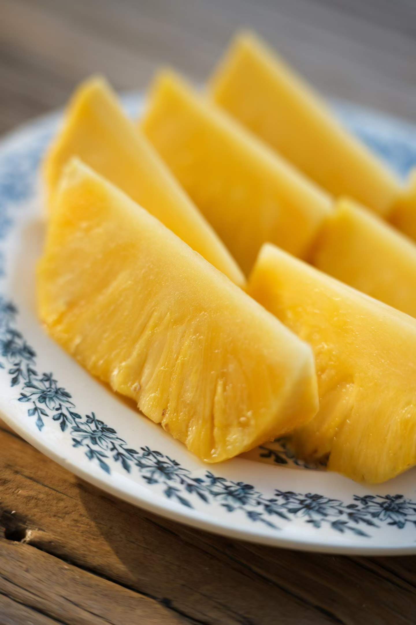 芒果凤梨果眼很浅,不用费心挖掉。不含“菠萝酶”,不需要用盐水泡!也可以像吃西瓜一样切片吃。