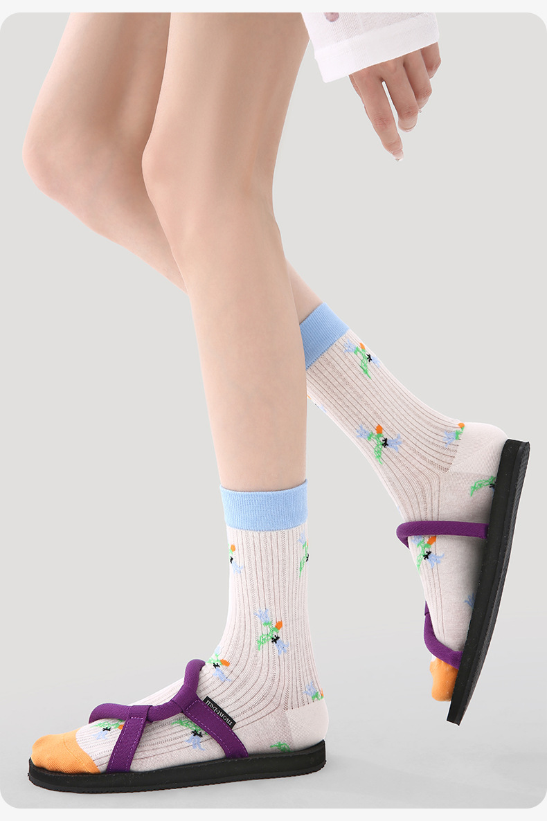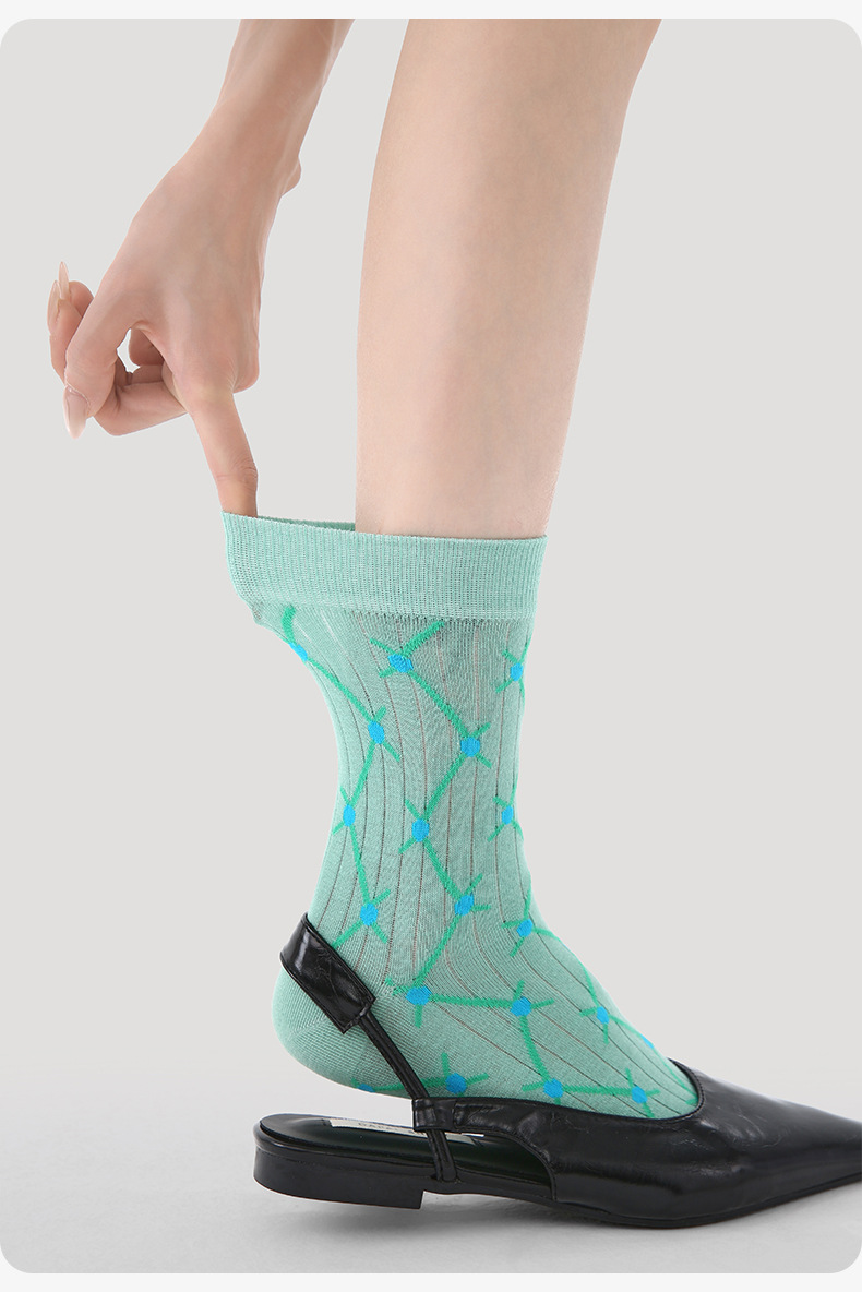 【超绝设计❗好看到爆】Renaissance春夏季新款绿色菱格中筒袜薄款少女学院风网眼袜子女