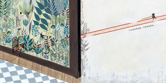 这是在美术馆发生的奇遇故事,是一本充满着巧妙幻想的图画书。 跟随爸爸妈妈逛美术馆的小女孩,在觉得无聊的时候,突然听见了奇怪的声音,好奇心被勾起的小女孩于是朝着声音传来的方向走去,然后画里的门 就像谎言一般地打开了,小女孩毫不犹豫地走出门外,爬上了浮在空中细细长长的梯子,因为好奇而并不停地往前走,遇到了非常巨大非常恐怖的毛茸茸、眼睛溜溜 转的狮子。即使小女孩全身哆嗦,她仍然对狮子说:“你千万不要想着吃我,我真的一点儿也不好吃。”正式小女孩的这份勇气,小女孩进入到梦寐以求的乐园,在 这个地方和狮子一起玩耍,感觉幸福极了。 |