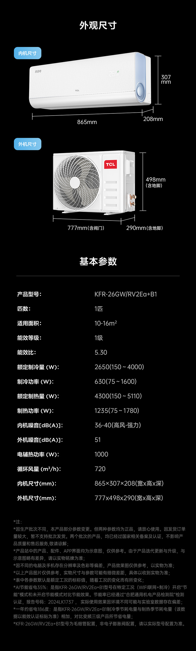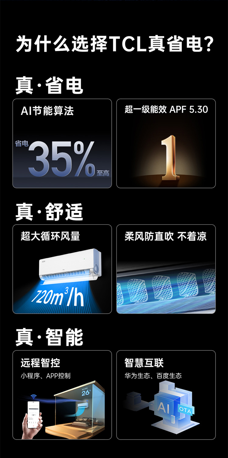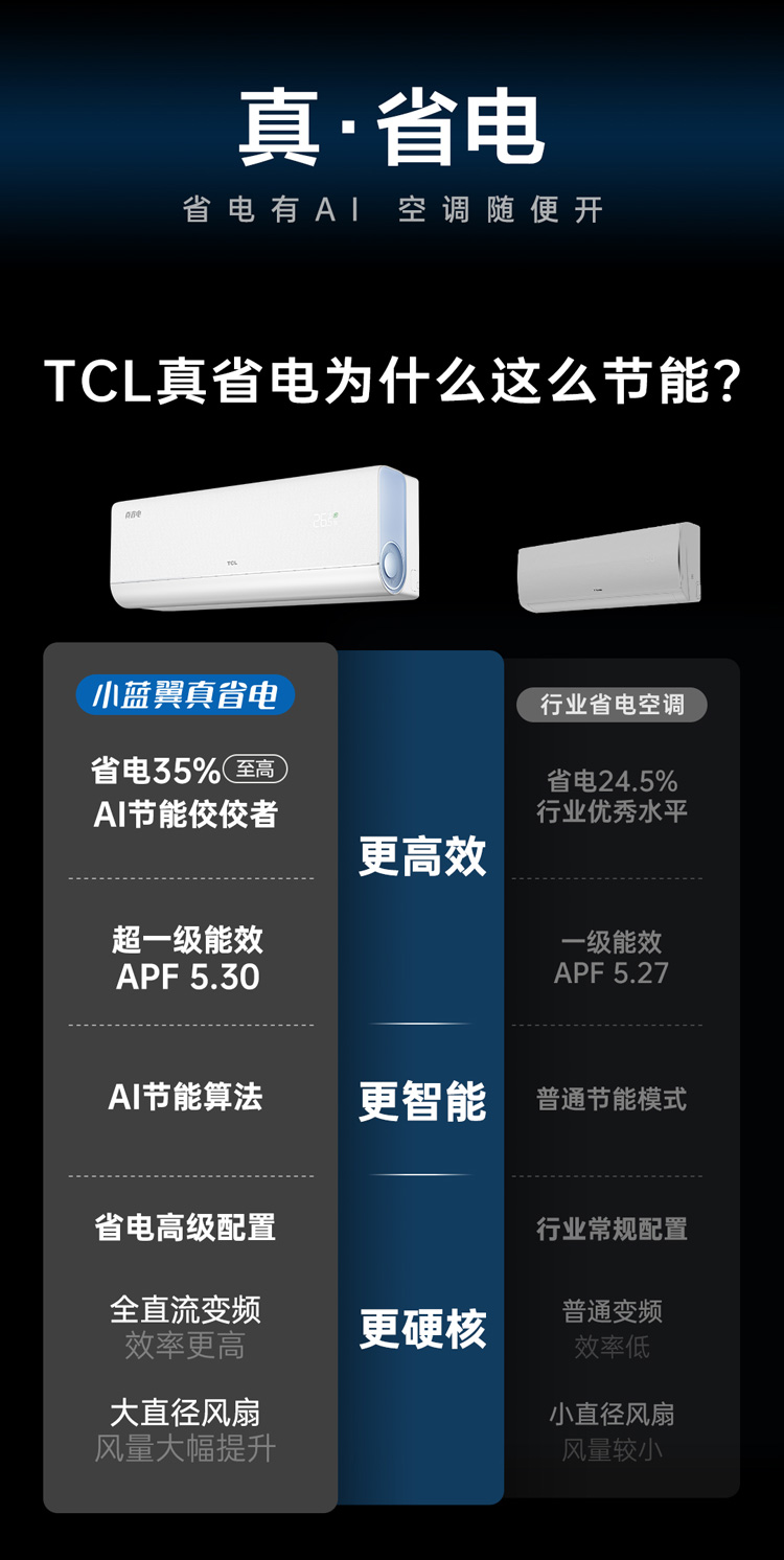TCL 1匹小蓝翼真省电节能空调挂机 超一级能效 省电35% KFR-26GW/RV2Ea+B1