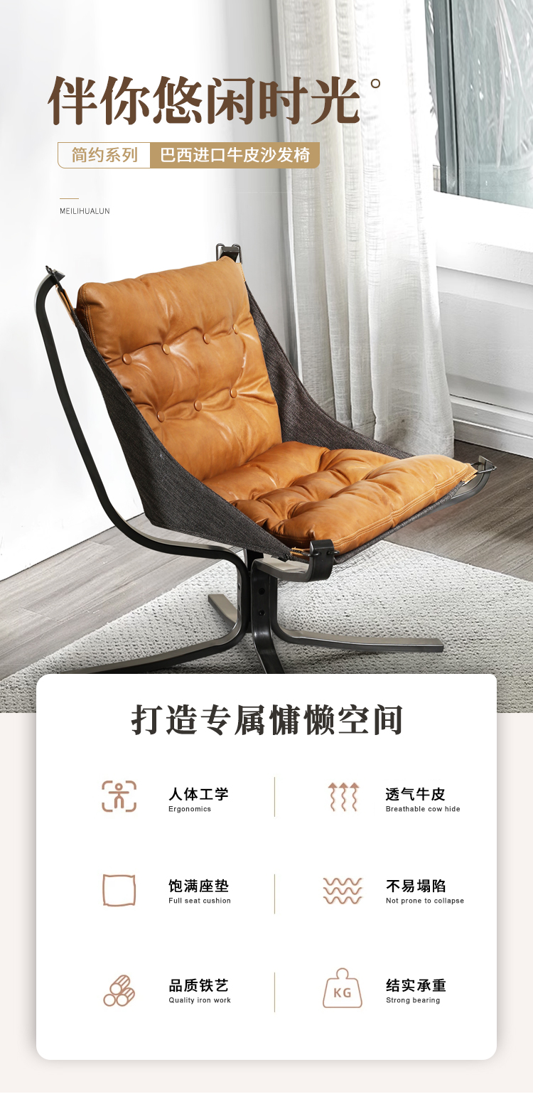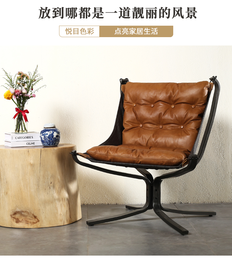 华伦新品意式沙发椅复古牛皮工业风设计师个性吊椅客厅阳台休闲椅
