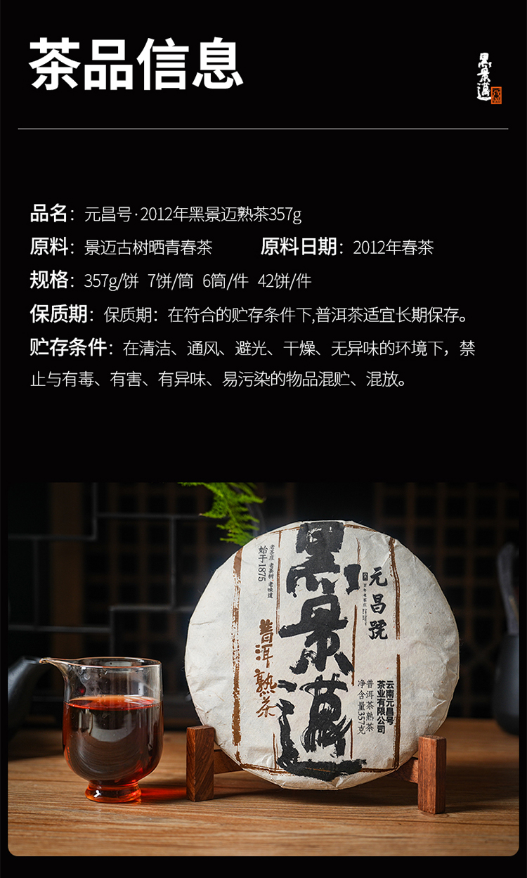 【元昌号】2012年黑景迈古树纯料熟茶357g