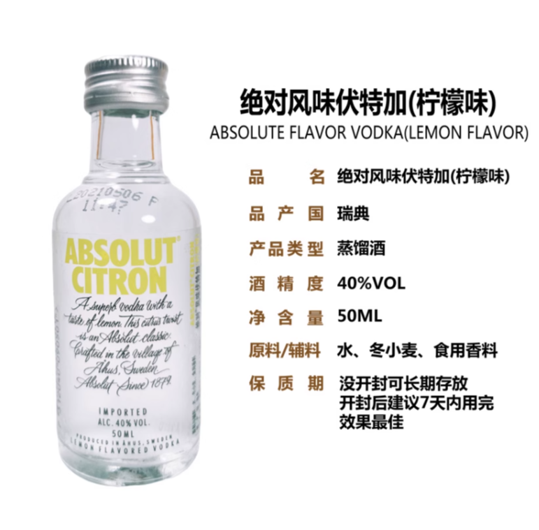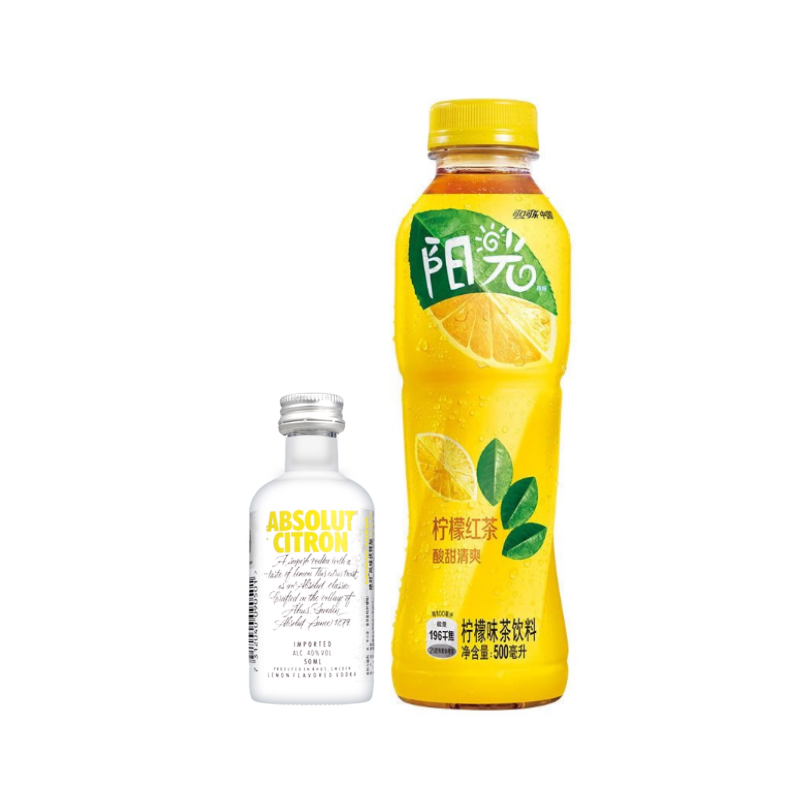 【特调DIY】微醺伏特加柠檬茶:绝对伏特加(柠檬味)小酒版50ml +阳光柠檬茶500ml