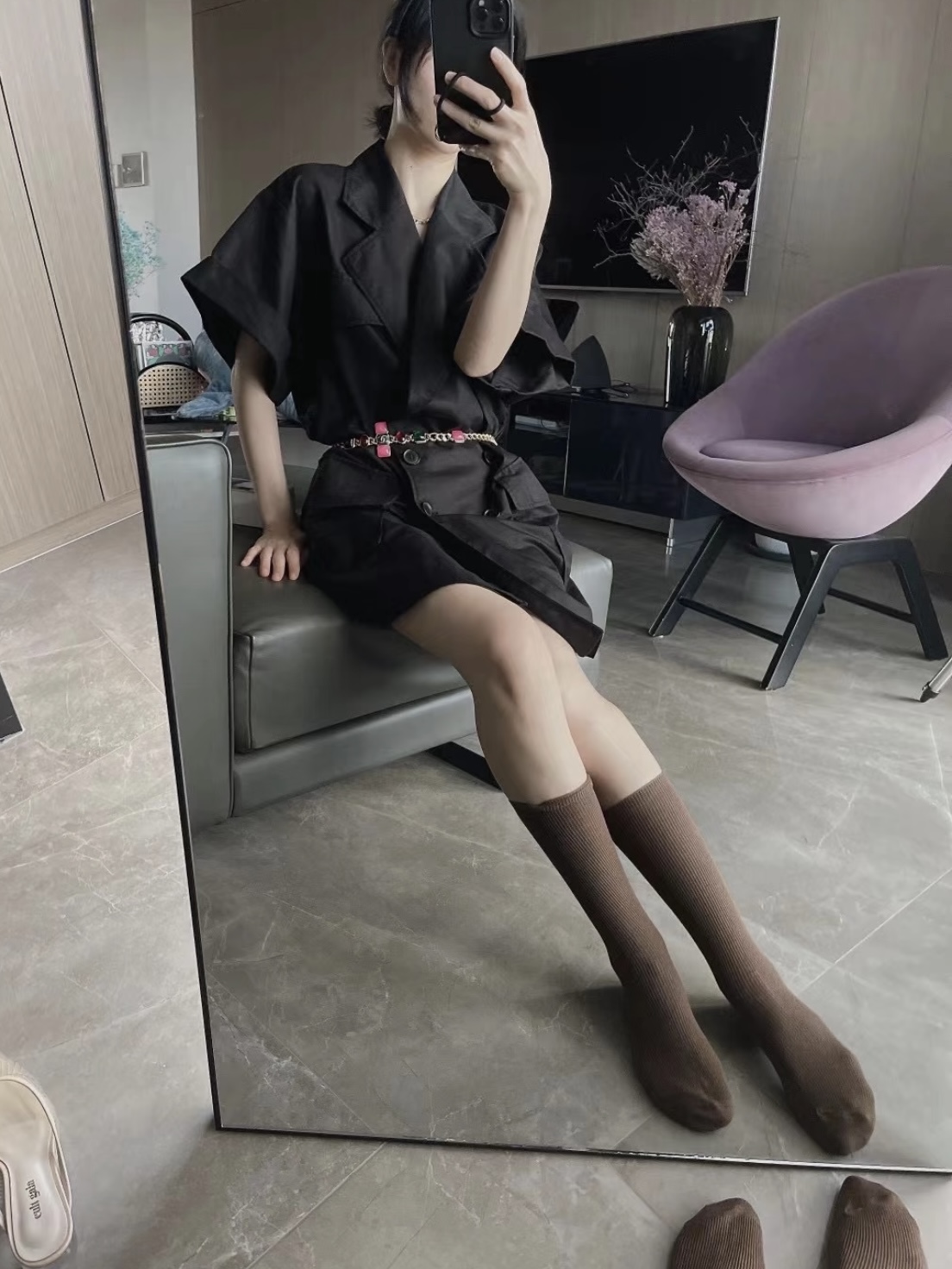袜子长度就是到脚踝小腿位置,视觉上并不会造成腿粗腿短的负担