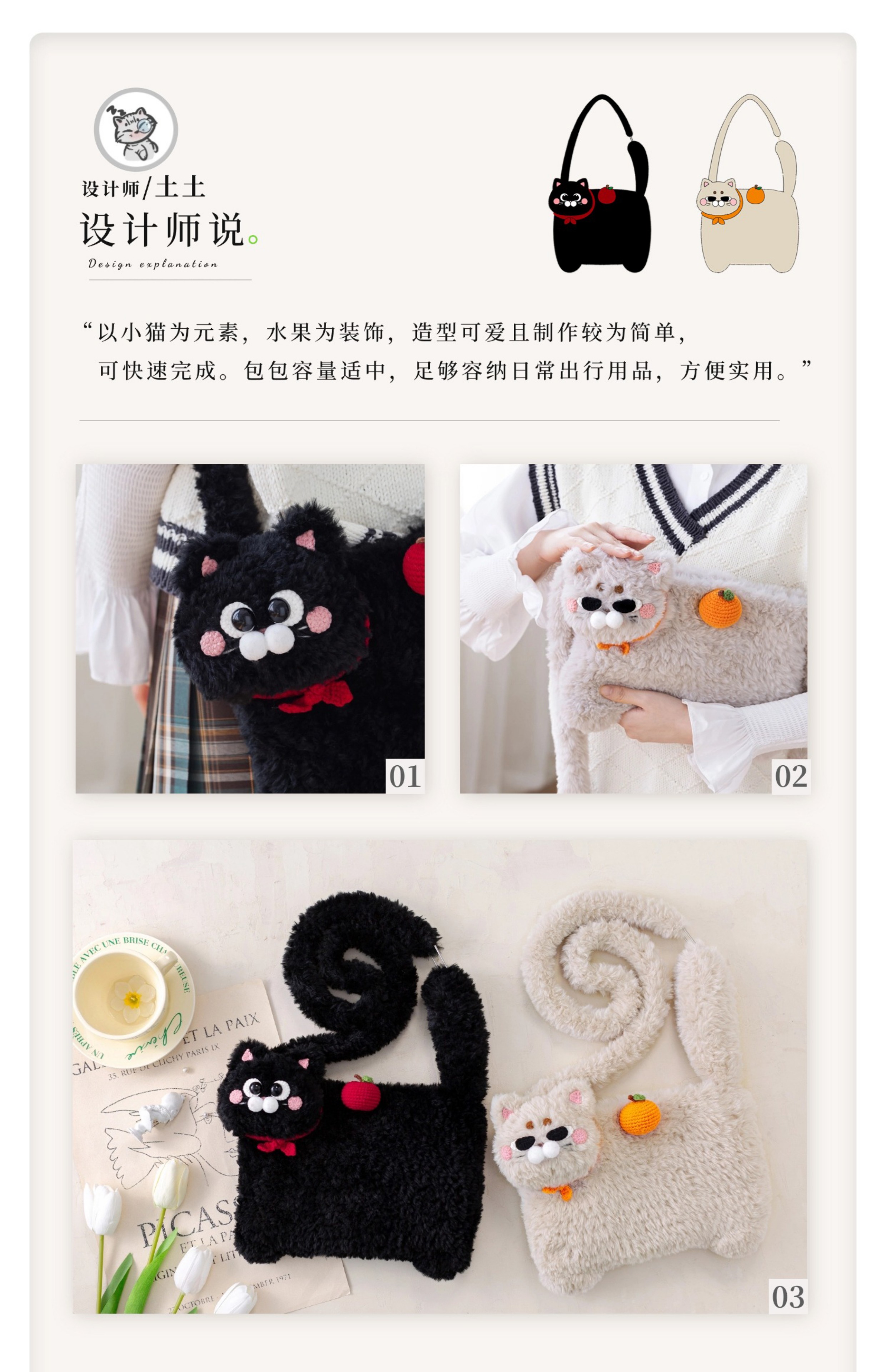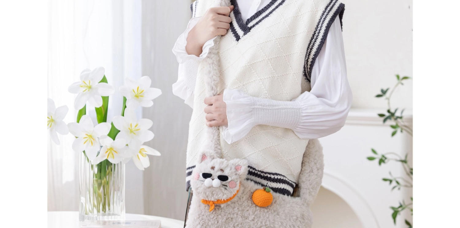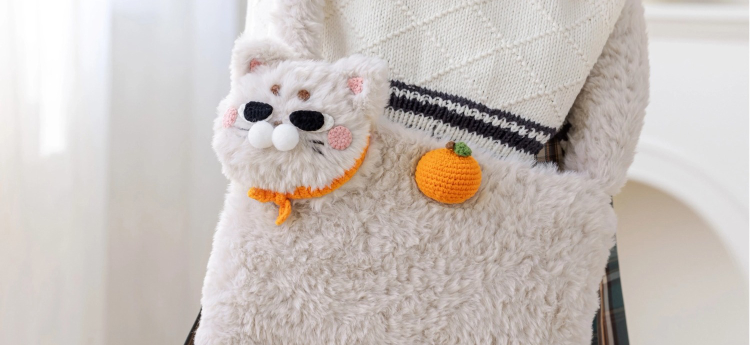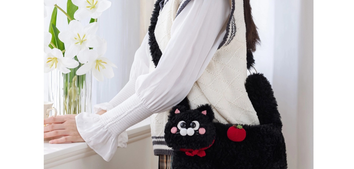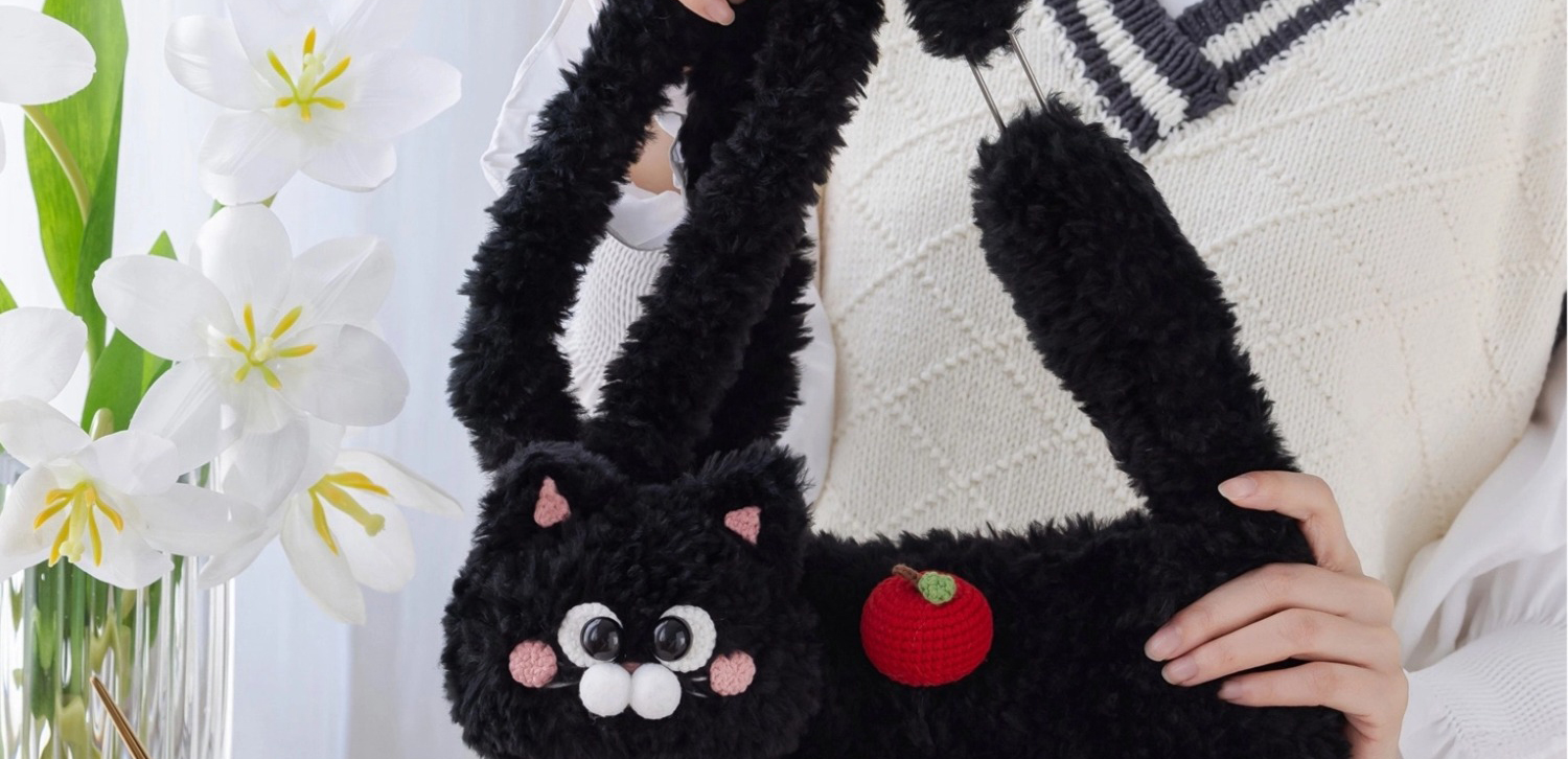 苏苏姐家小猫斜挎包手工diy编织钩针绒绒包毛线团自制包包材料包