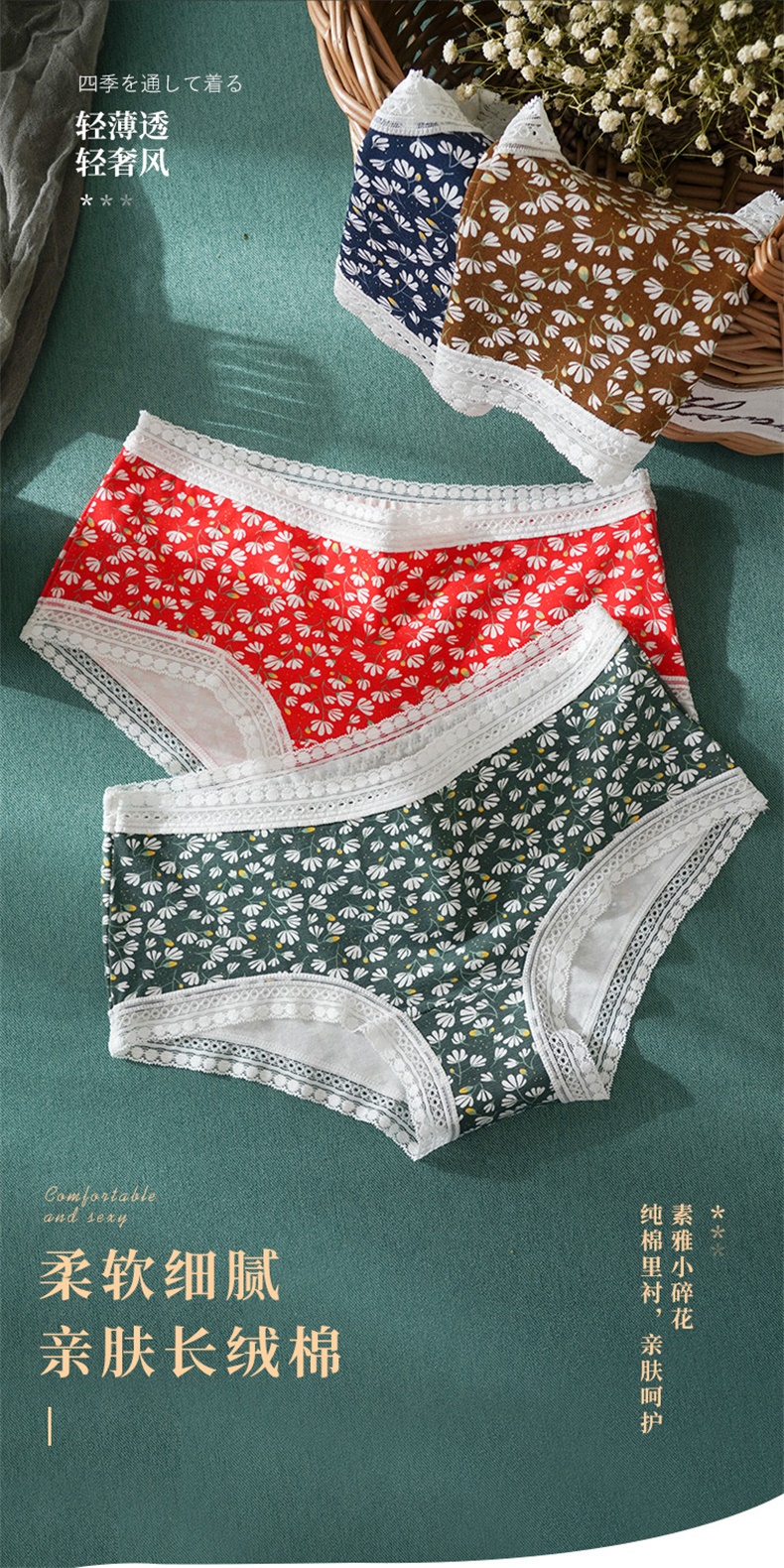 雅黛丽内裤女士低腰三角裤印花性感舒适弹力内裤4条组合装
