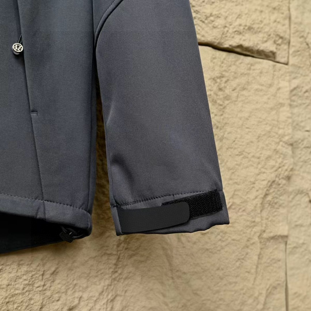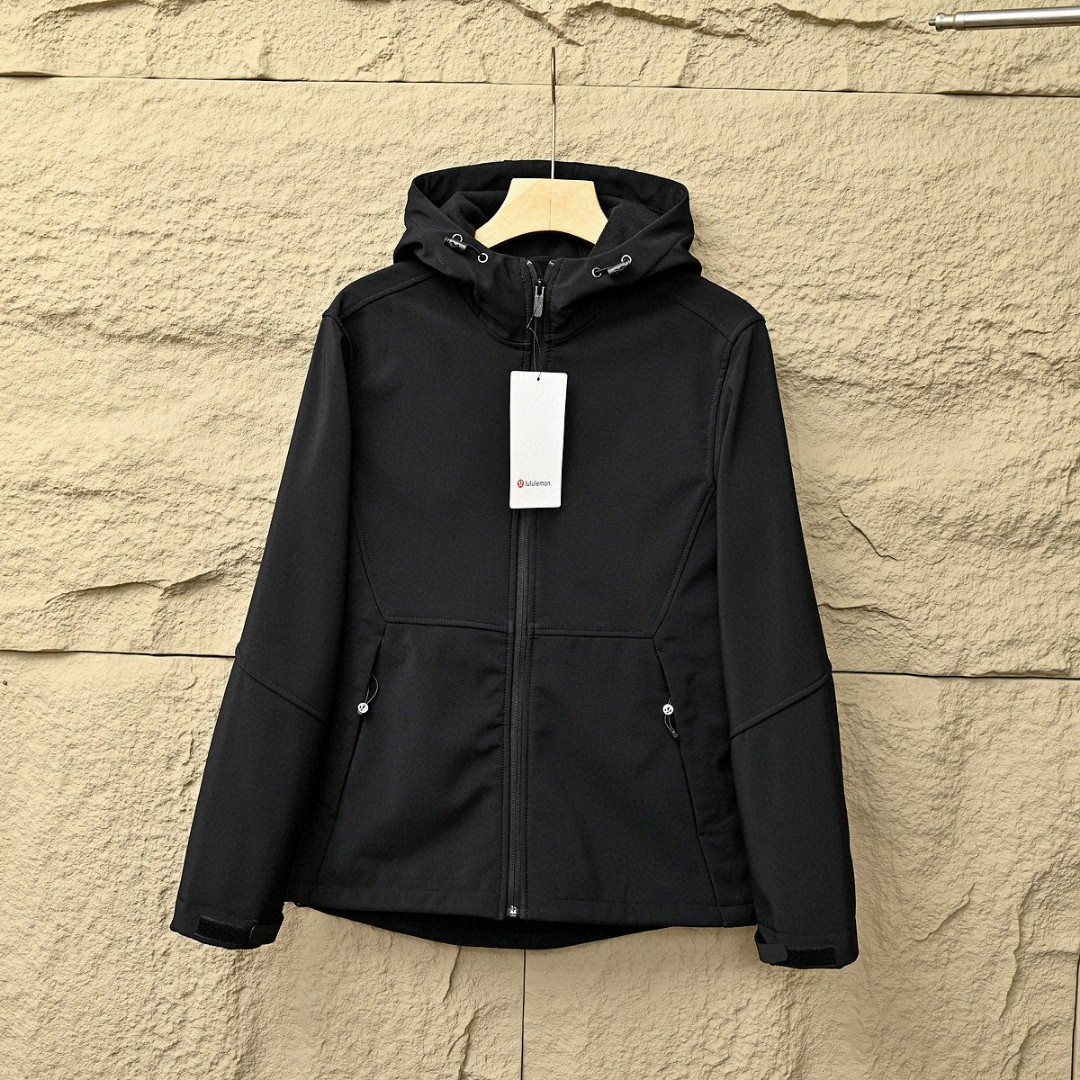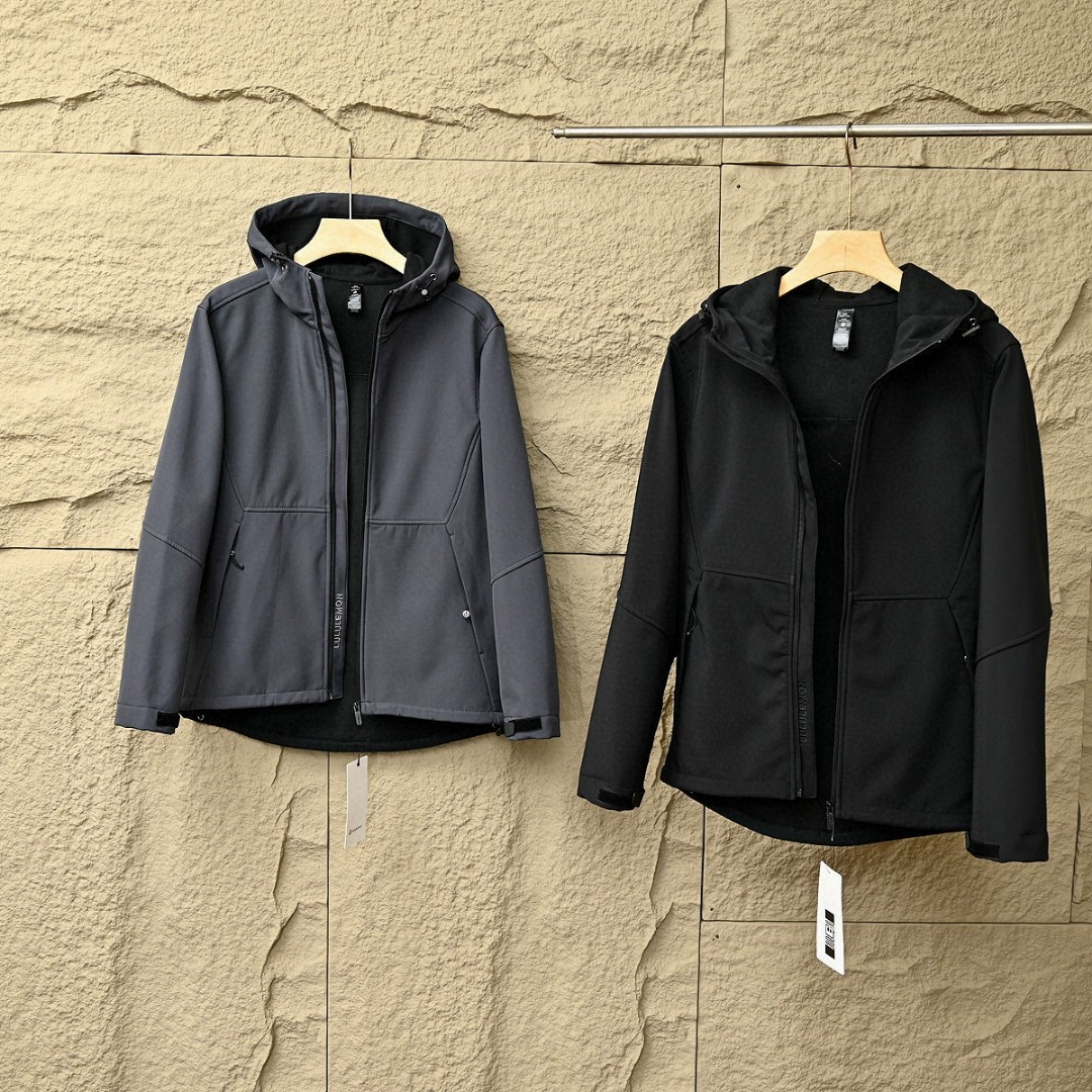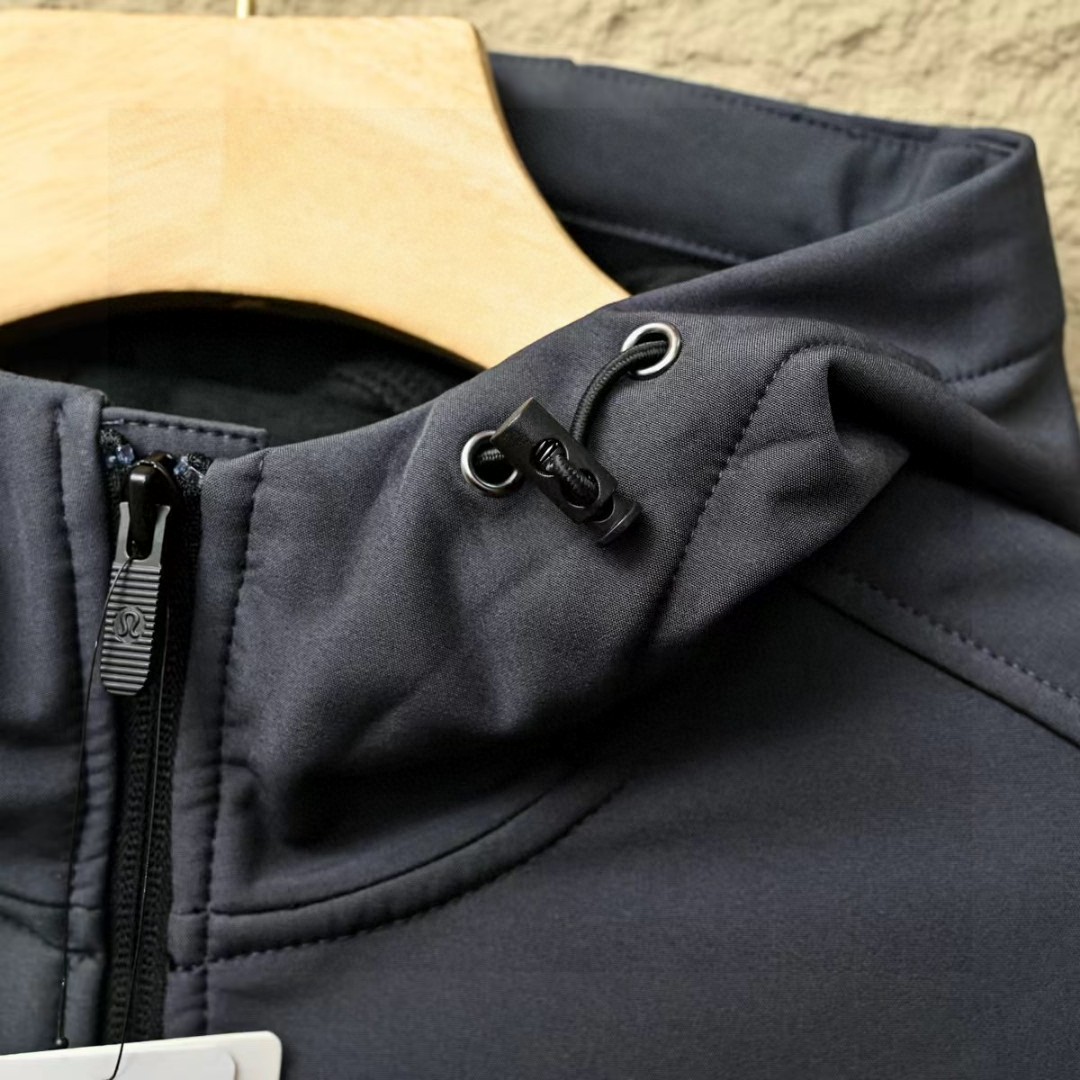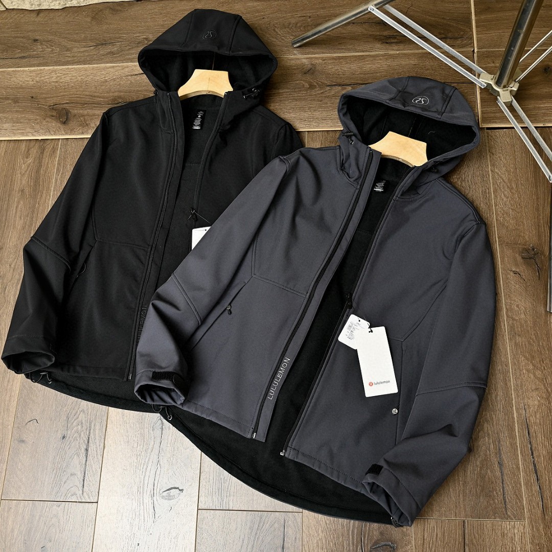 露露LULUABC春秋季软壳三防功能连帽拉链外套,加绒加厚!高弹力梳织面料厚实弹力防风保暖! 做工精细刺绣logo,内里包边。三标一致细节满满!