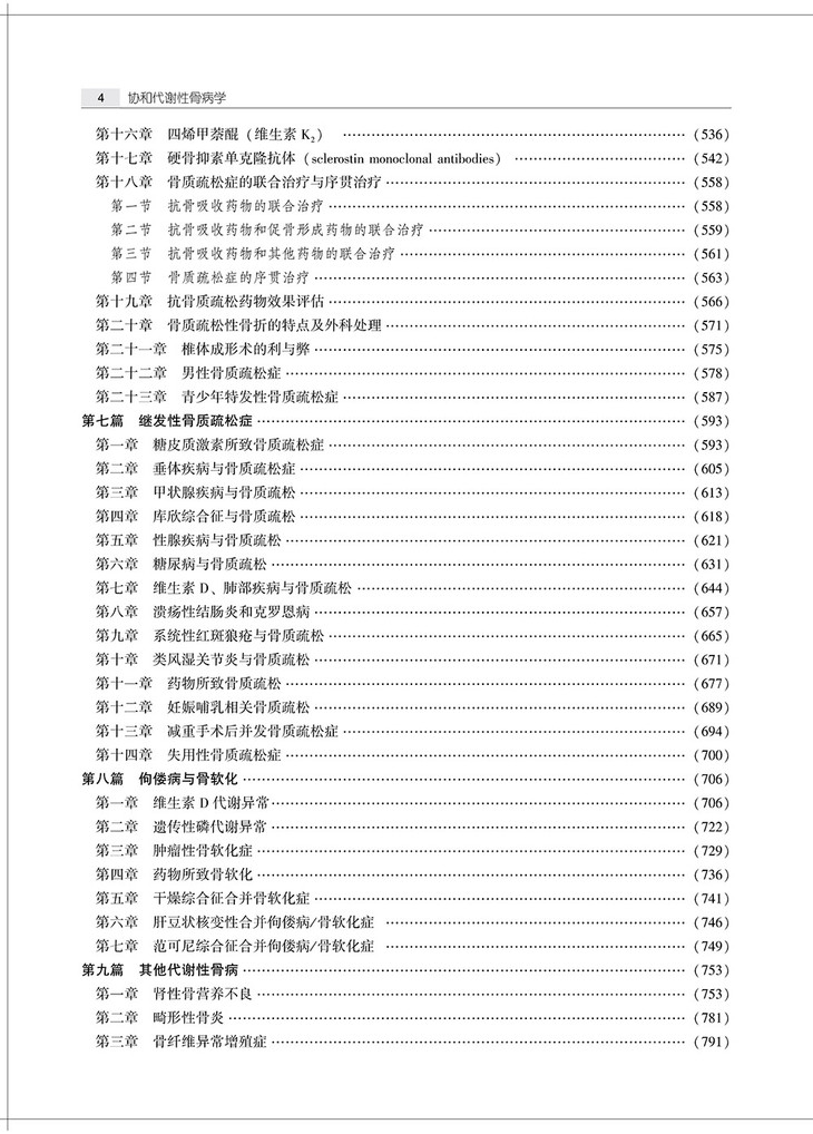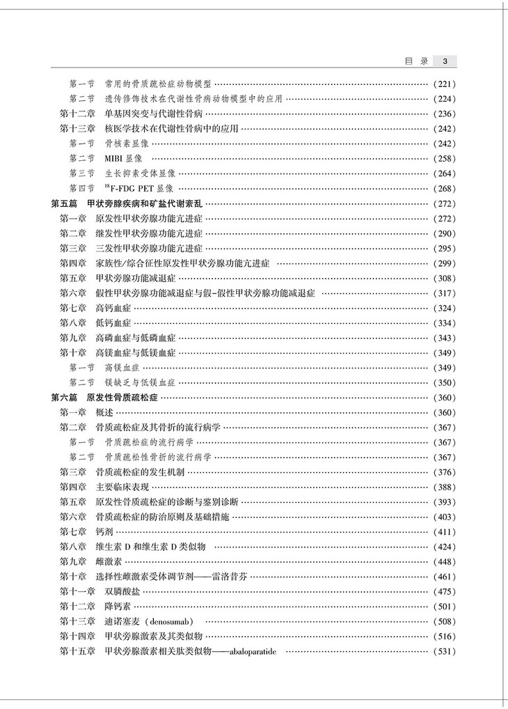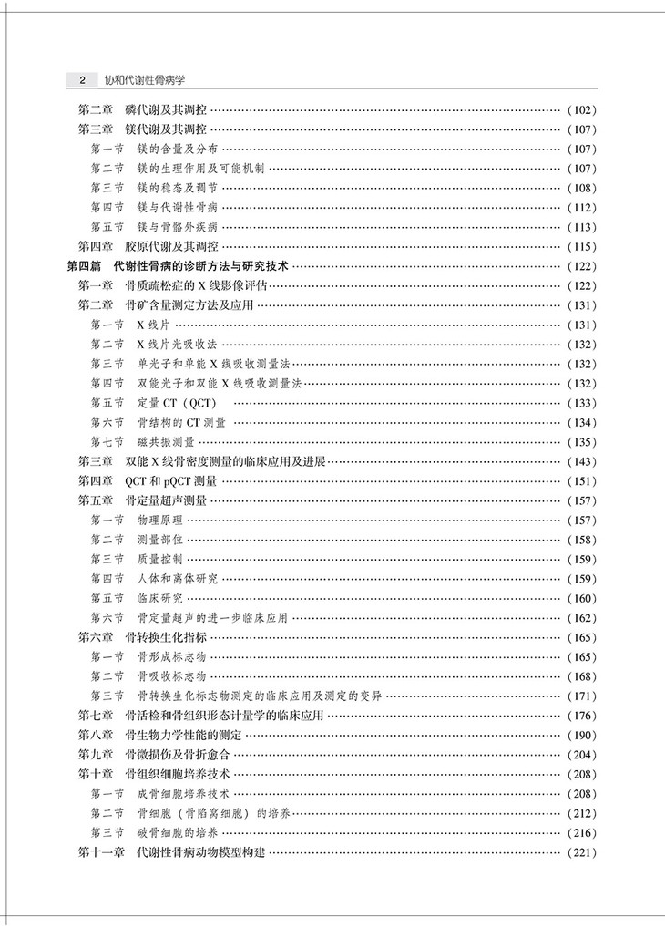 第四篇:代谢性骨病的诊断方法与研究技术,共13章,从超声、影像、核医学、生化到分子水平检测,系统完整地阐述了代谢性骨病的诊断方法。还包括代谢性骨病的动物模型、骨组织细胞培养技术等研究技术,配有多幅示意图,便于读者理解。