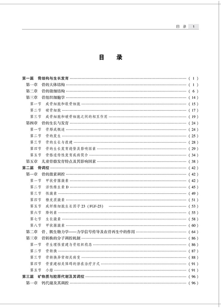 至第三篇:基础理论部分,共11章,从解剖、生理、生化角度全面系统介绍了骨的结构与生长发育、骨调控、矿物质与胶原代谢及其调控。结构严谨,深入浅出。