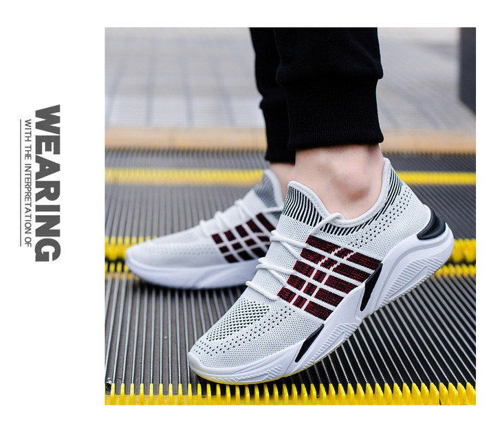 【羽毛球鞋】。春季男鞋飞织渔网鱼丝低帮男休闲鞋男韩版潮流休闲运动鞋