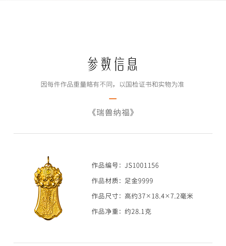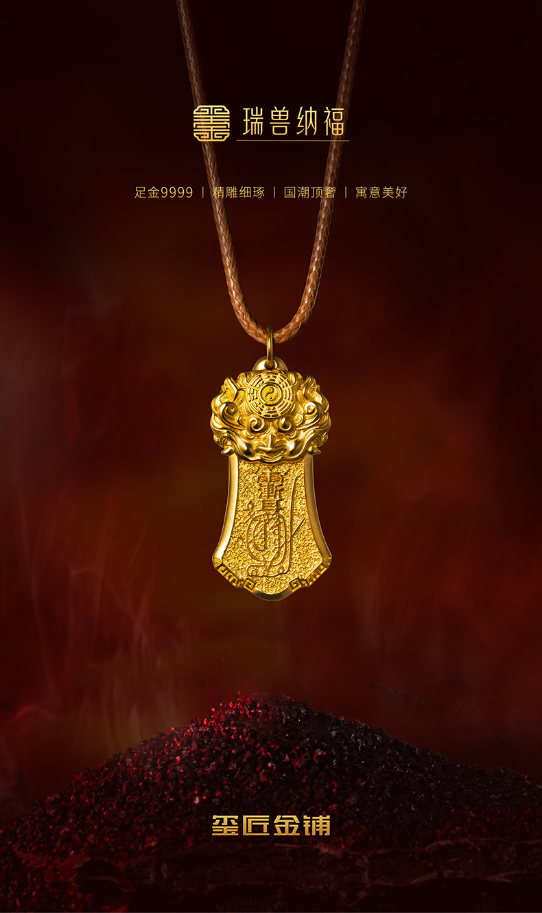 玺匠金铺《瑞兽纳福》足金9999 黄金吊坠项链生日礼物