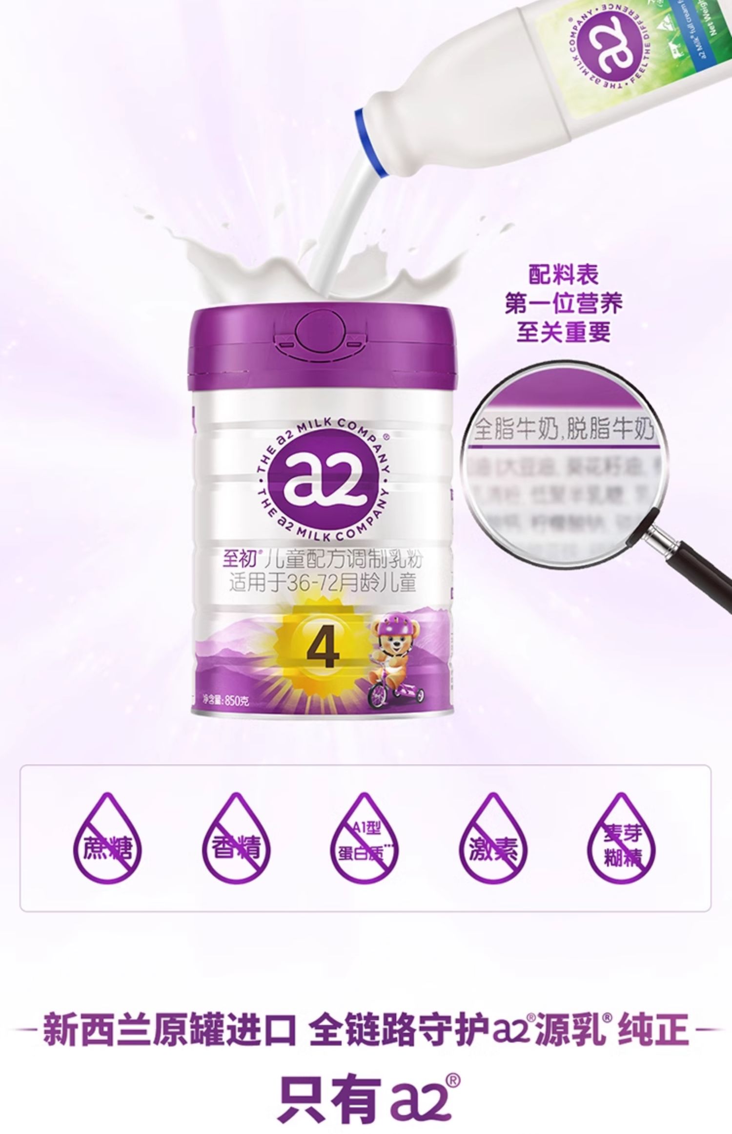 9楼母婴生活馆 【新国标新升级四送一】a2至初儿童配方奶粉四段850g 活动价:408元