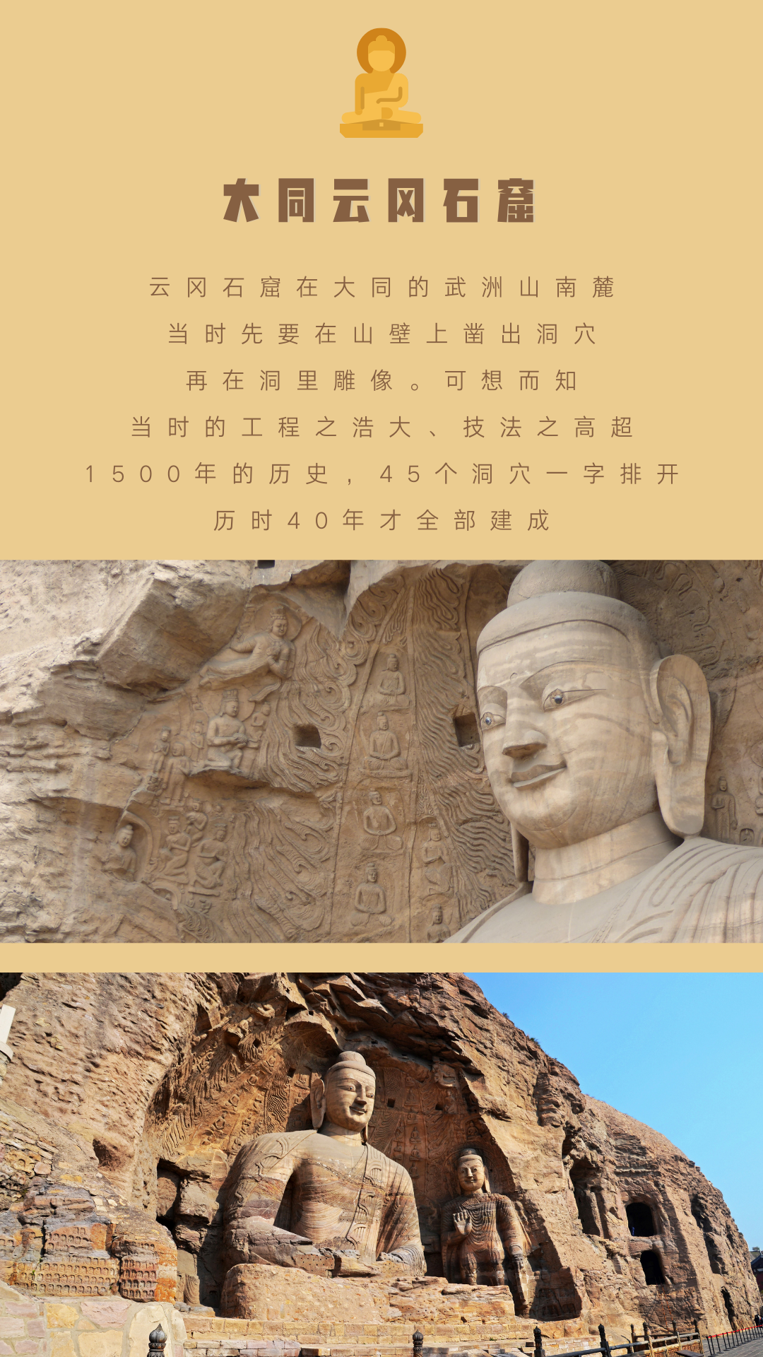 春秋晋国城、曲沃晋国博物馆、洪洞大槐树景区、平遥古城、代县雁门关、大同古城、大同云冈石窟