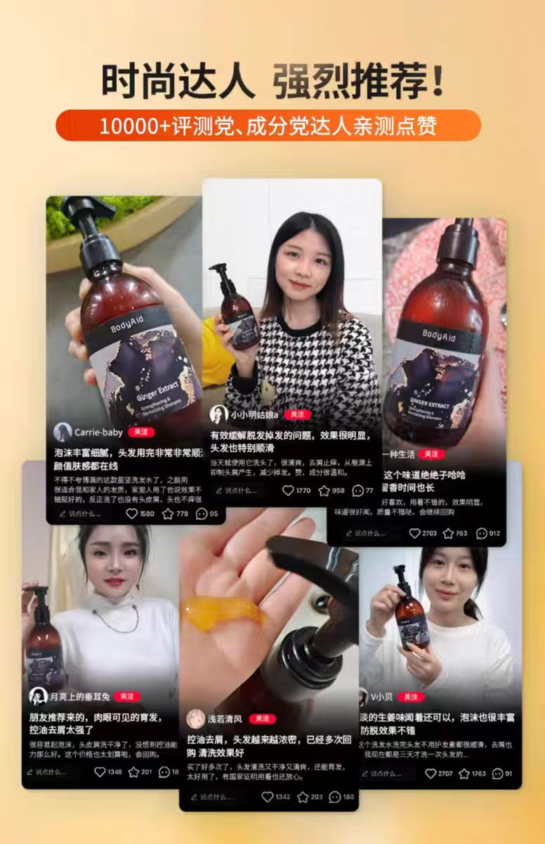 4楼Eubelle欧蓓 金星推荐Bodyaid博滴生姜盈润侧柏叶防脱固发洗发露330ml 吊牌价:69元 活动价:59元