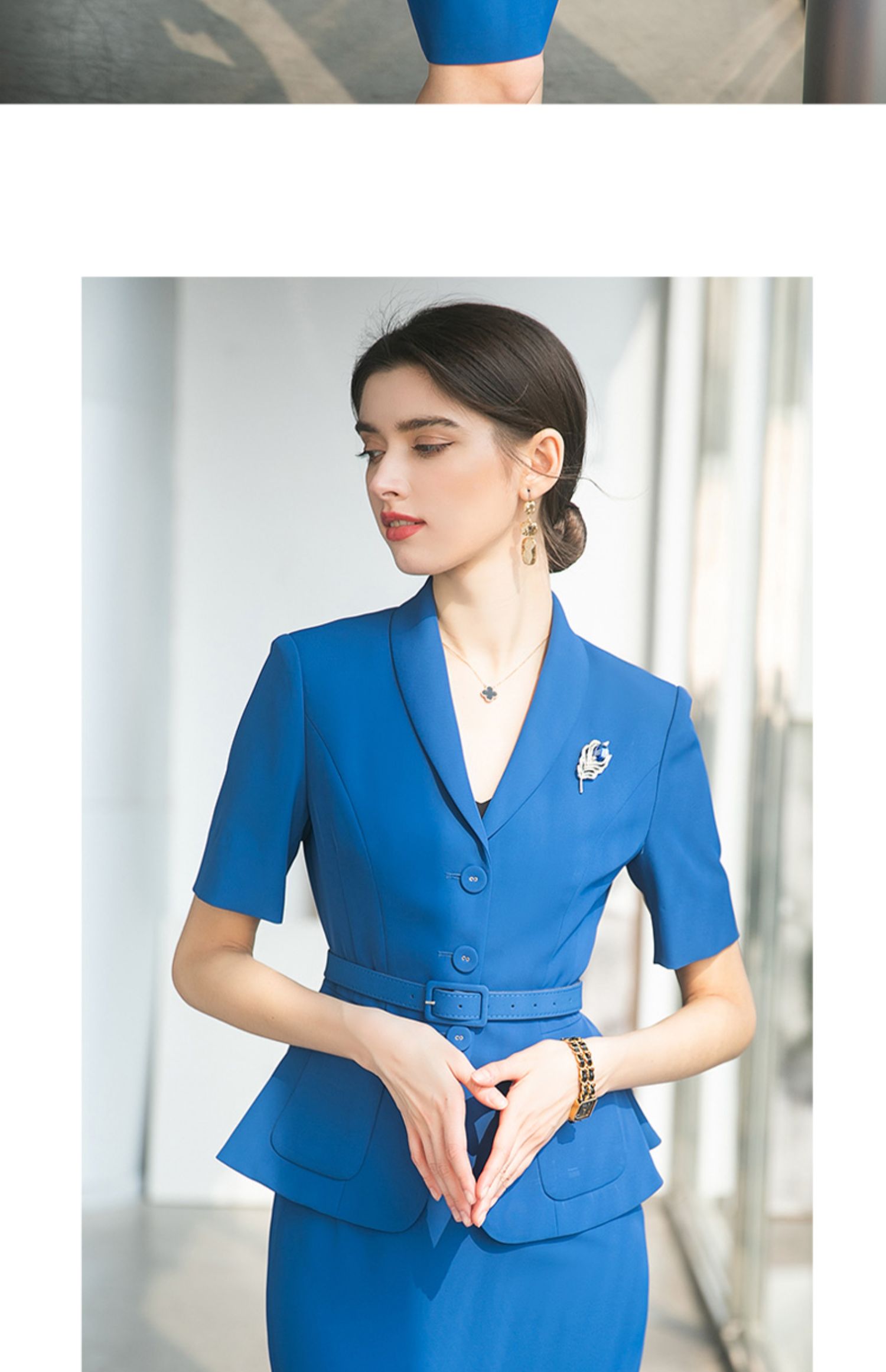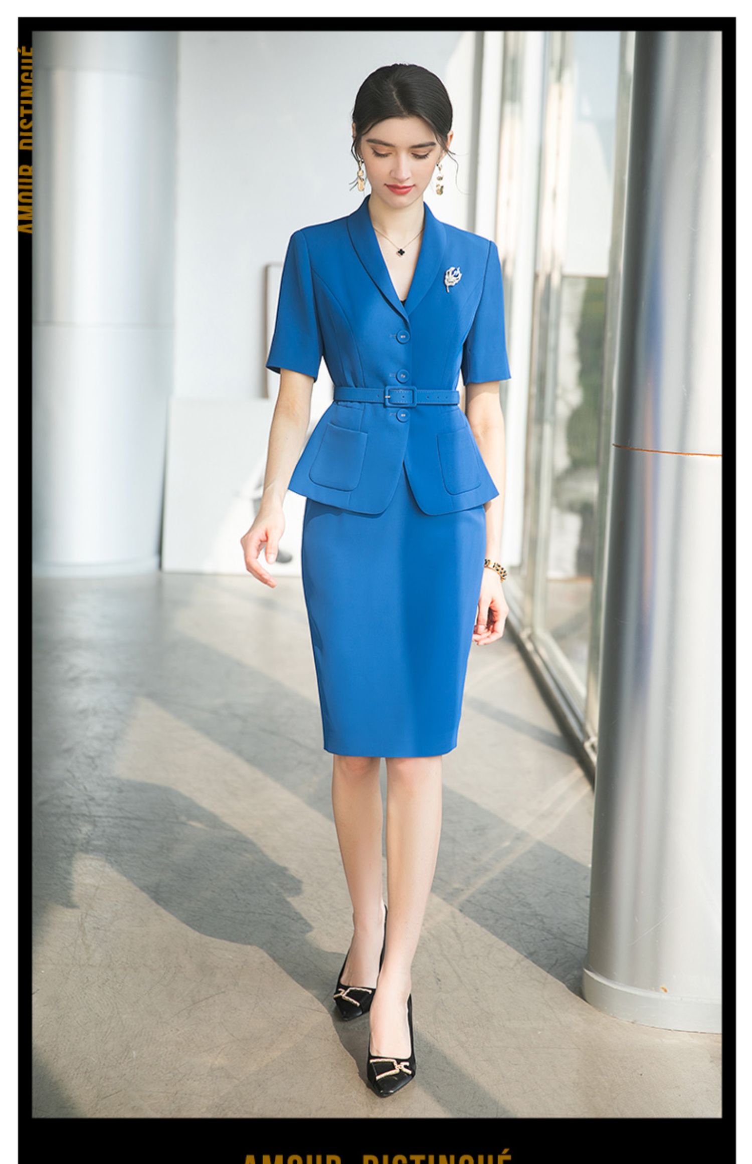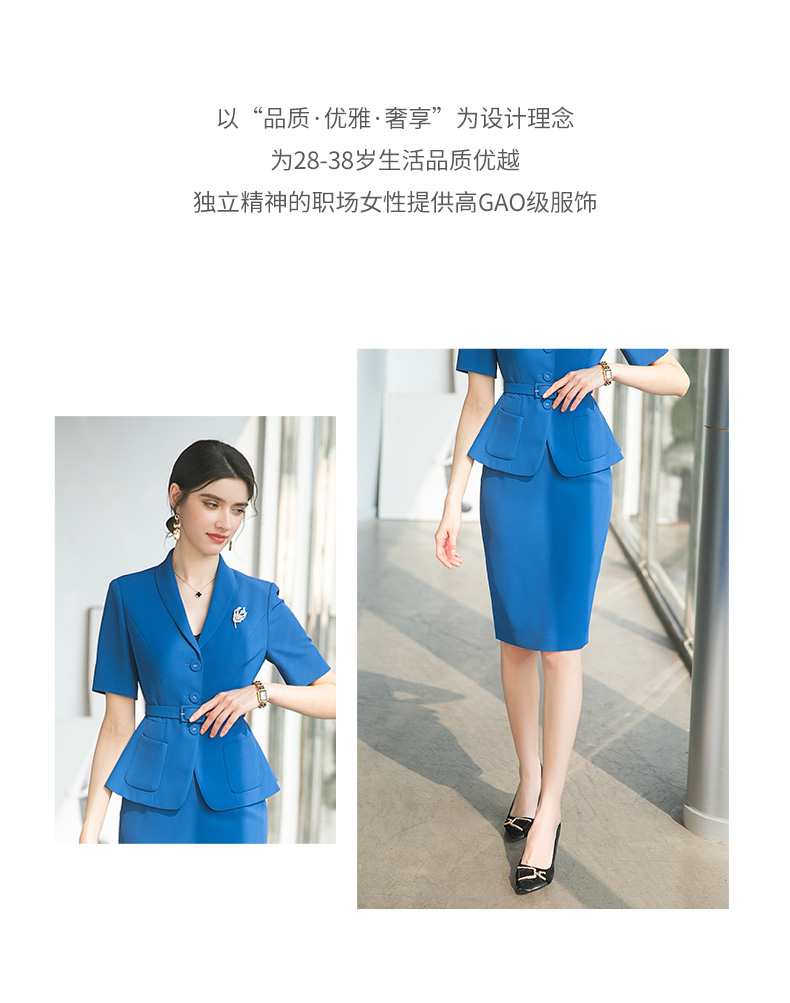AD酒店前台工作装夏季宝蓝色高级感西装套装女收腰显瘦职业工作服