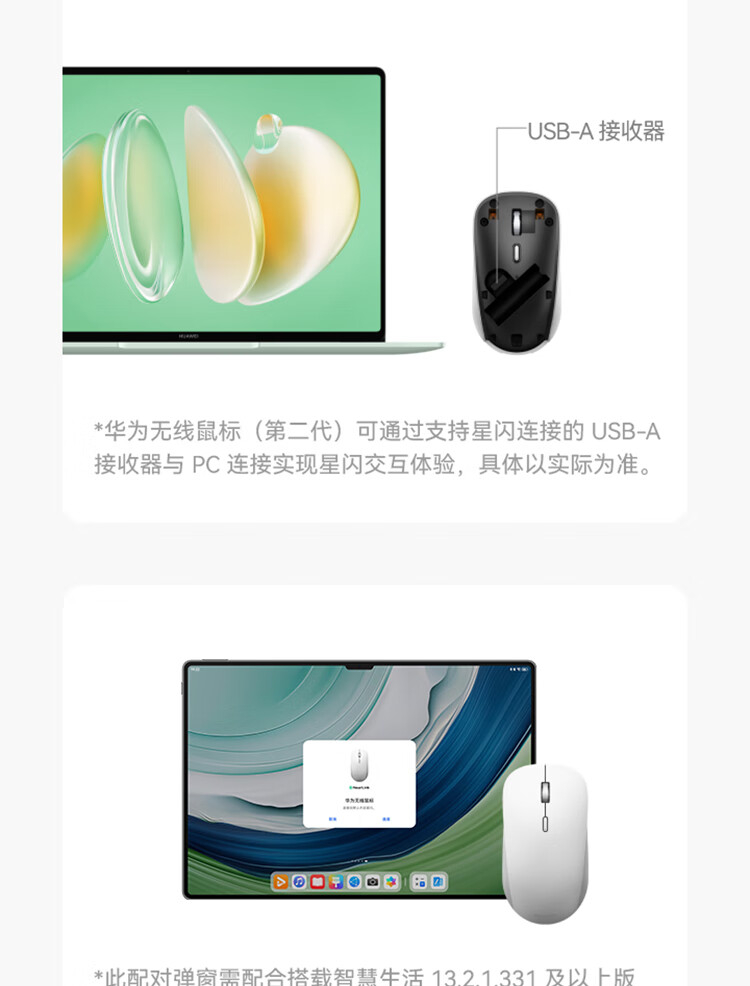 华为无线鼠标(第二代)CD26R 搭载NearLink芯片 适配鸿蒙笔记本