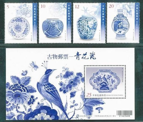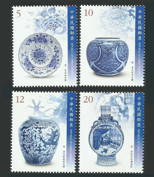 为阐扬我国历代青花瓷文物之美,台湾邮政以国立历史博物馆典藏的青花瓷器为题材,发行《历代皇家古物——青花瓷》邮票。
