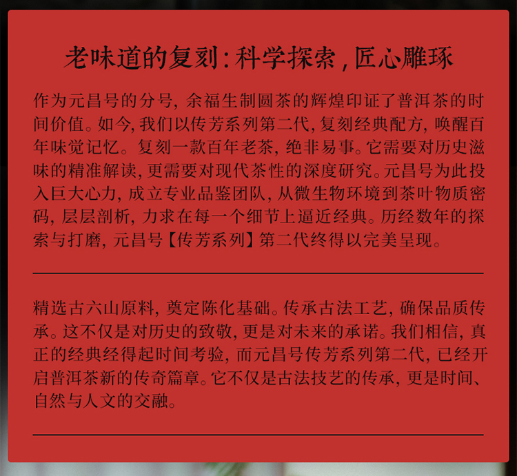 【元昌号】传芳系列2019年第二代复刻版357g生饼