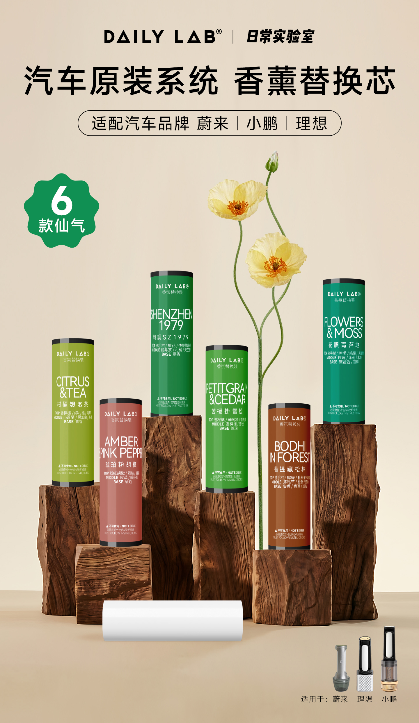DAILY LAB 新 蔚来理想小鹏新能源香氛替换芯车载香薰持久留香祛异味