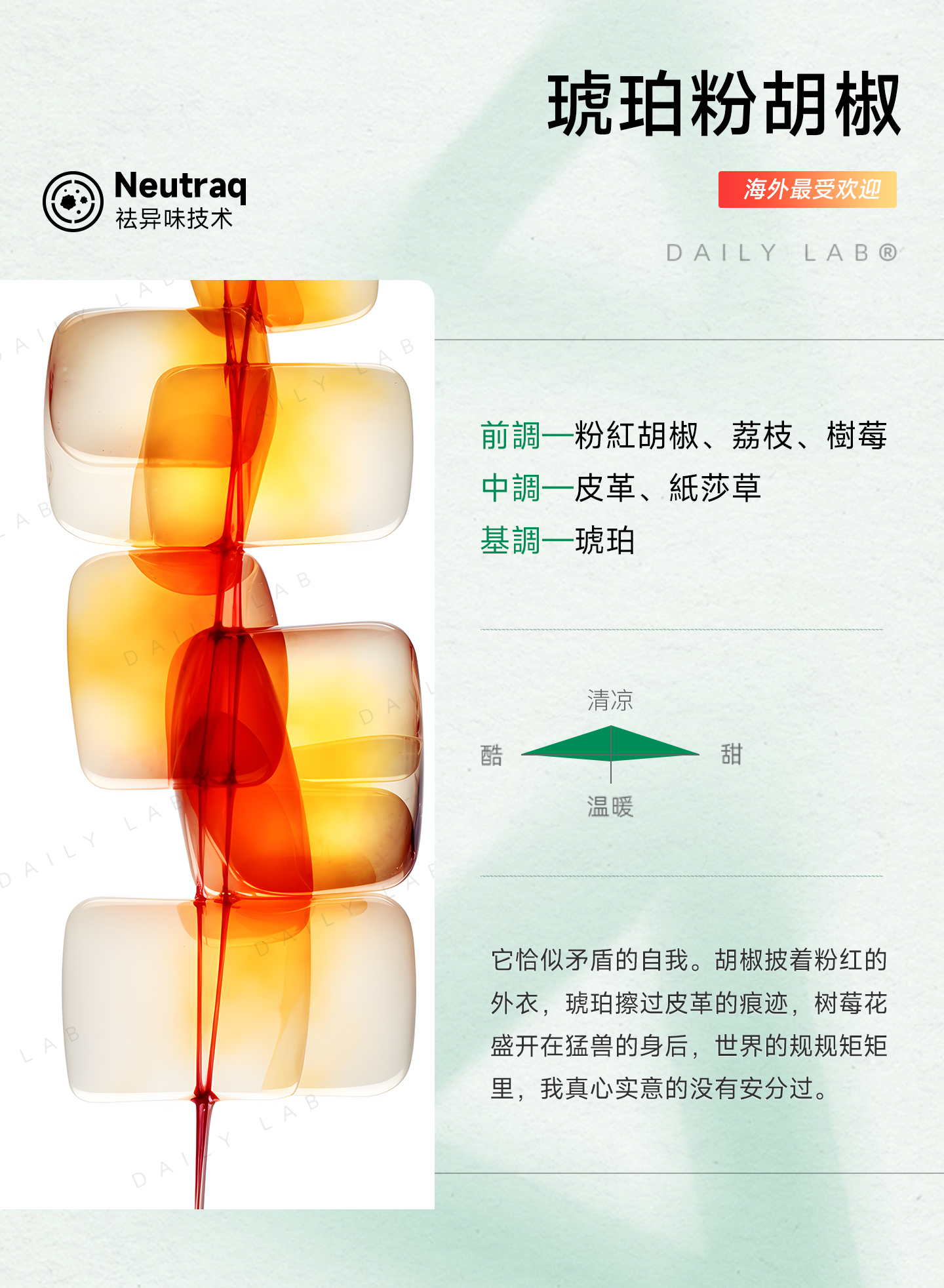 - DAILY LAB|日常实验室,立足东方美学,是专注于「香气可视化」的轻奢空气交互品牌。