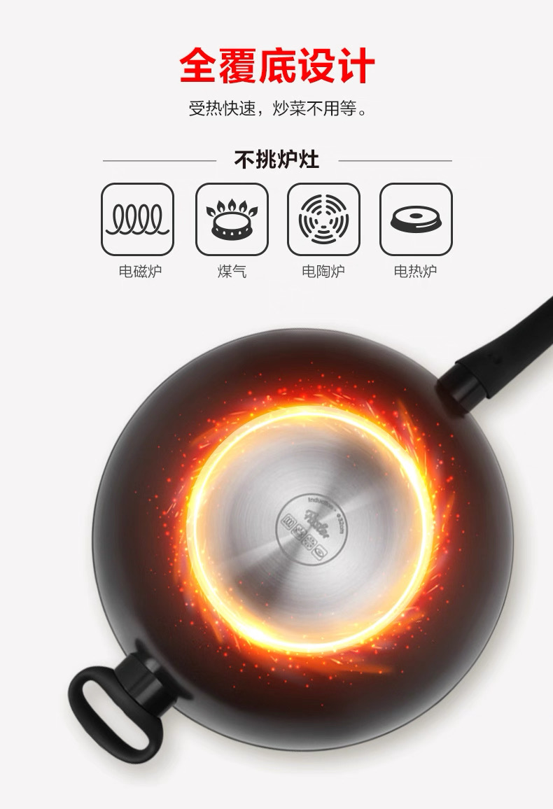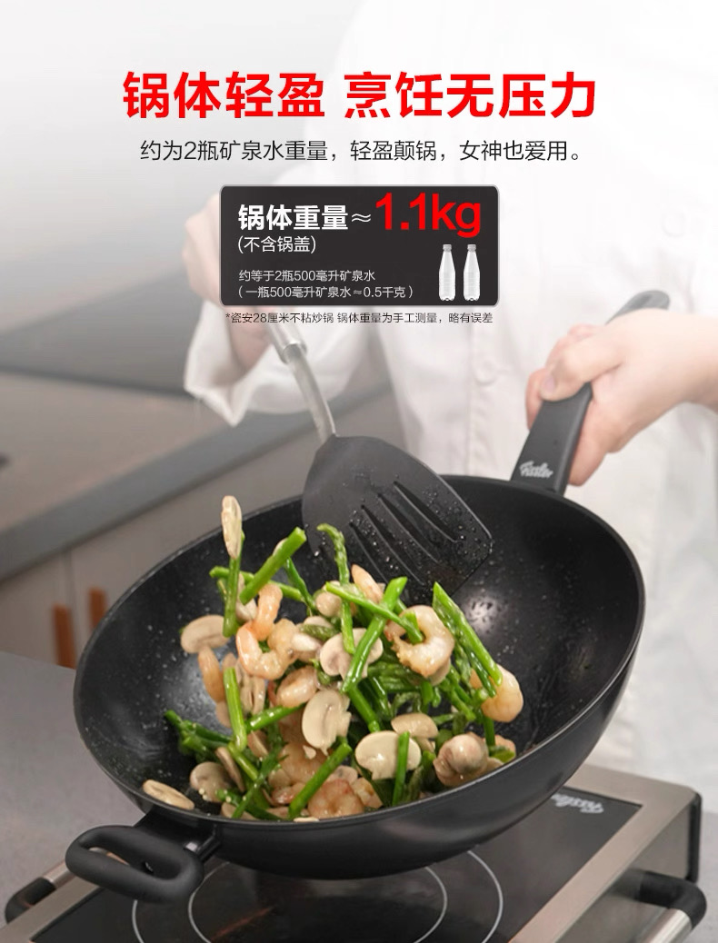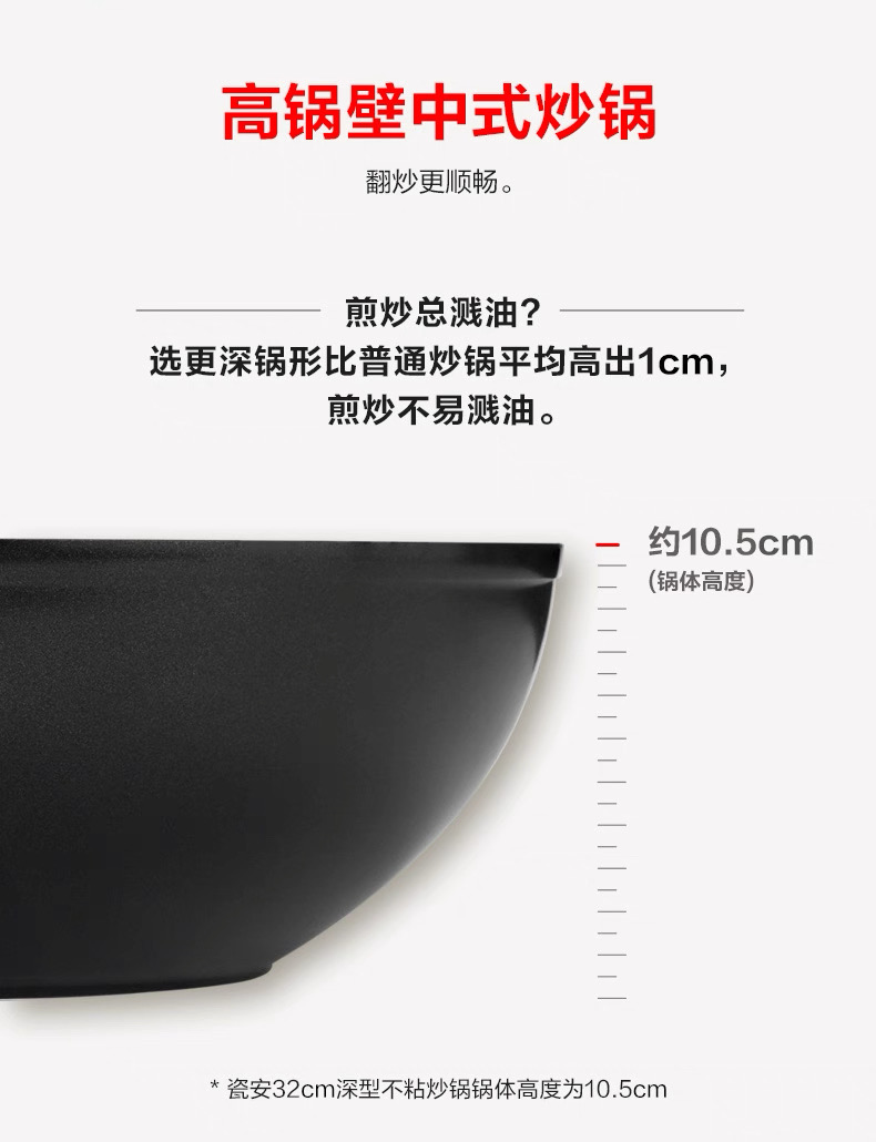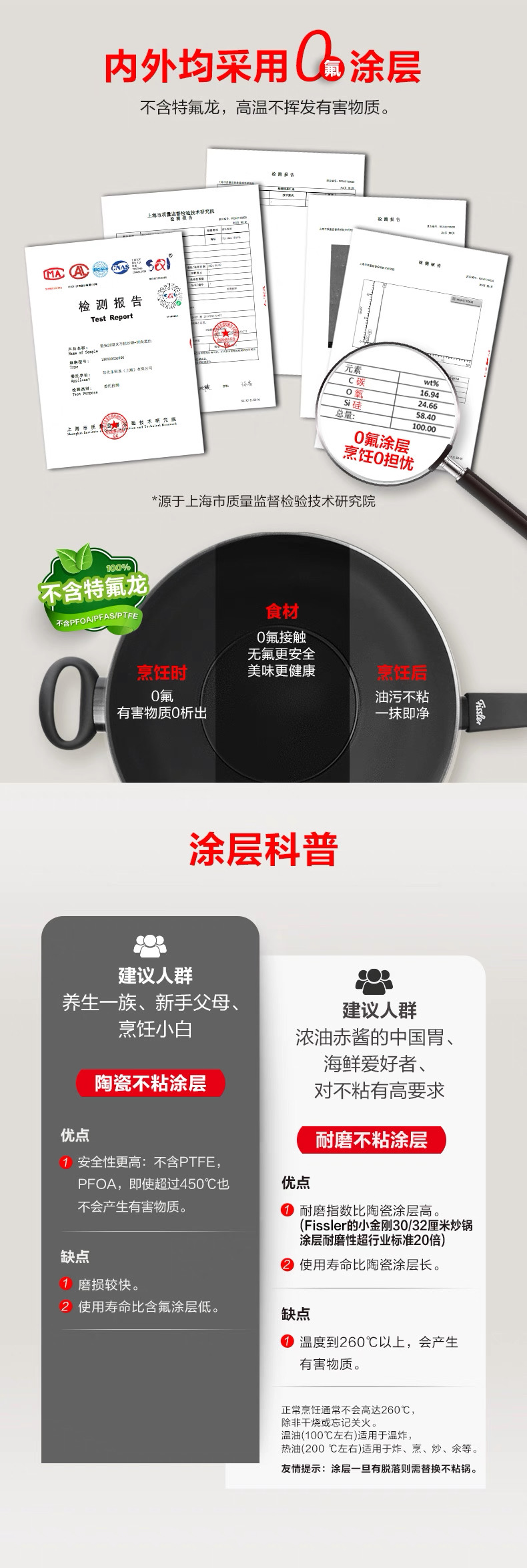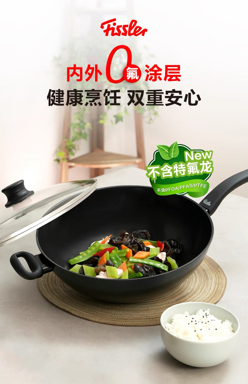 【6F】菲仕乐 瓷安32厘米不沾炒锅+玻璃盖