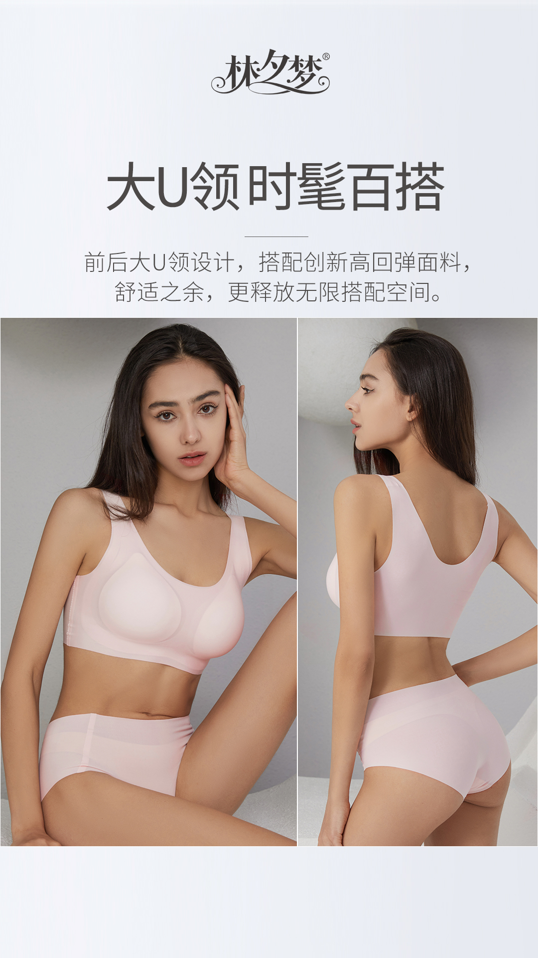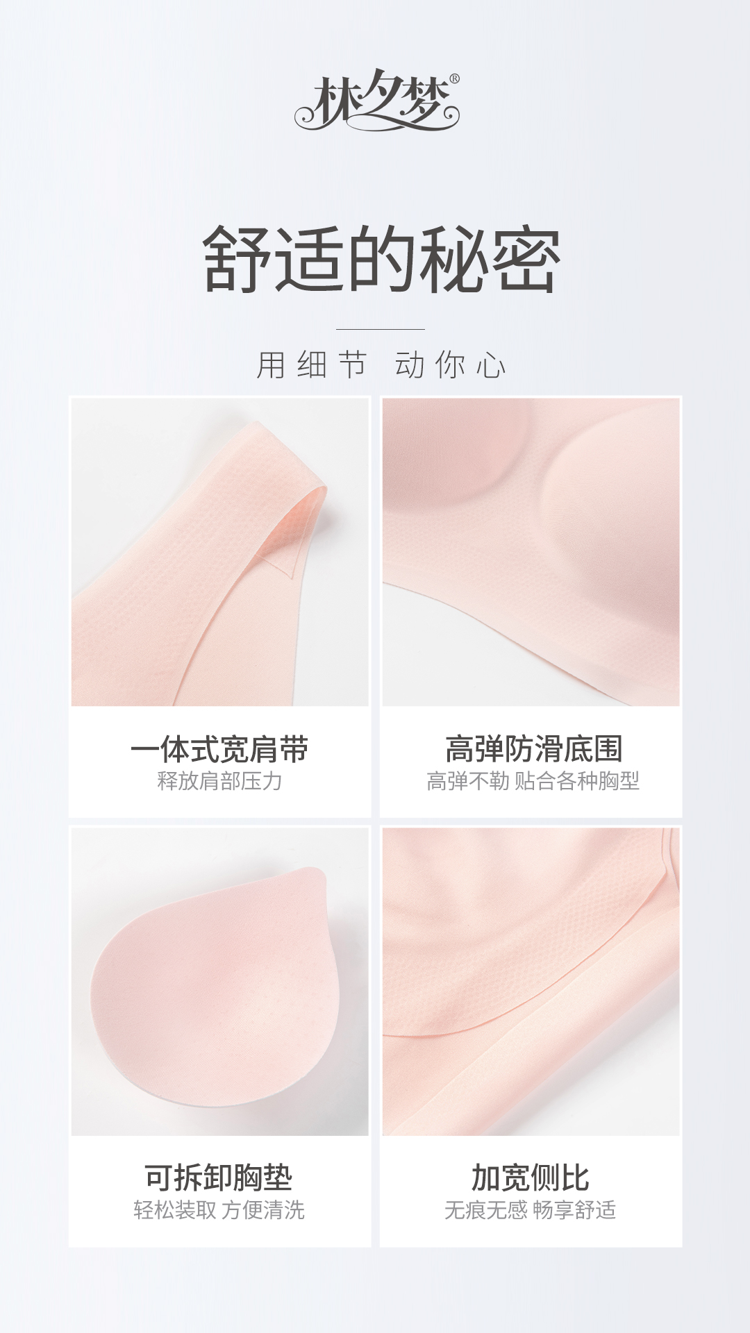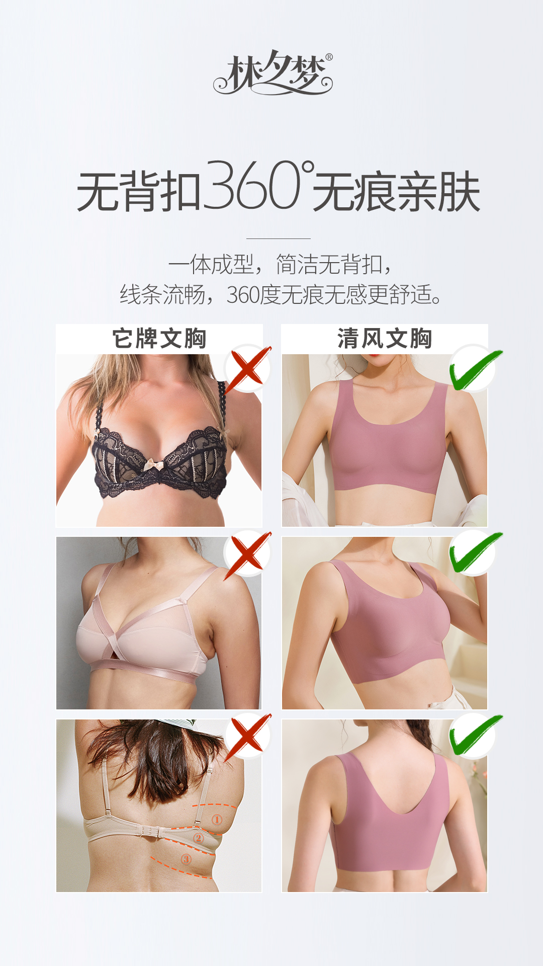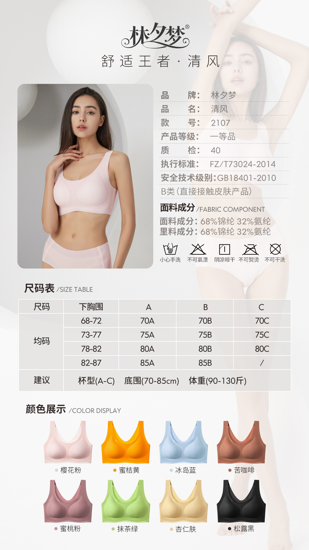 【清风文胸】新型无尺码 舒适无界限 一体式宽肩带 减压不勒 无背扣 360°无痕亲肤 大U领 时髦百搭_2107