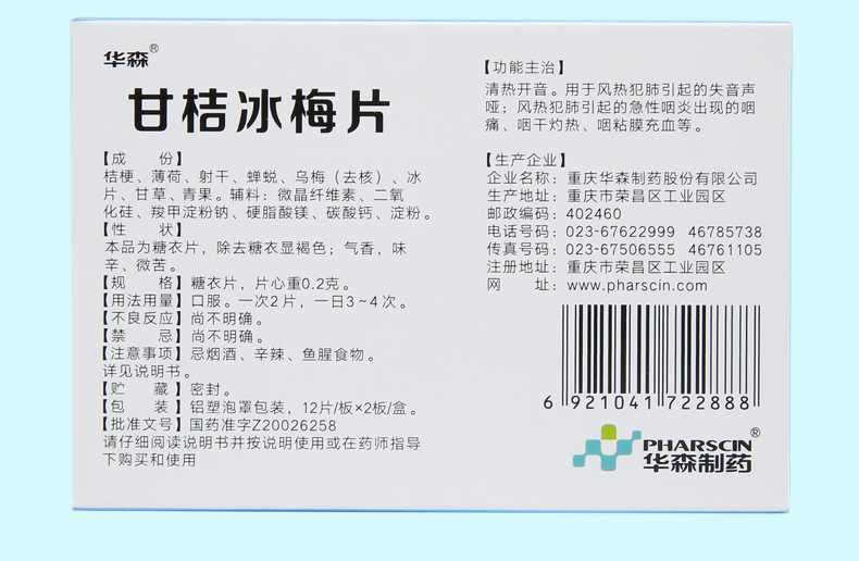 华森甘桔冰梅片24片 柑橘冰梅片失音声哑急性咽炎咽痛咽干灼热