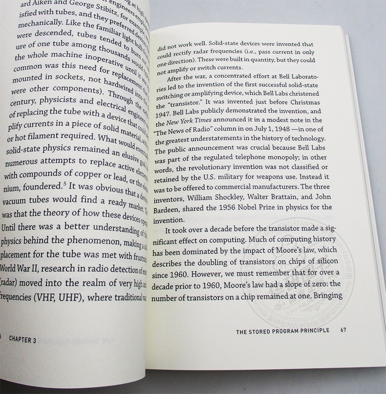 He identifies four major threads that run throughout all of computing's technological development: digitization--the coding of information, computation, and control in binary form, ones and zeros; the convergence of multiple streams of techniques, devices, and machines, yielding more than the sum of their parts; the steady advance of electronic technology, as characterized famously by "Moore's Law"; and the human-machine interface.
