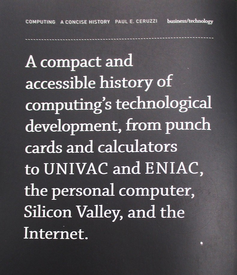 Ceruzzi guides us through computing history, telling how a Bell Labs mathematician coined the word "digital" in 1942 (to describe a high-speed method of calculating used in anti-aircraft devices), and recounting the development of the punch card (for use in the 1890 U.S. Census).
