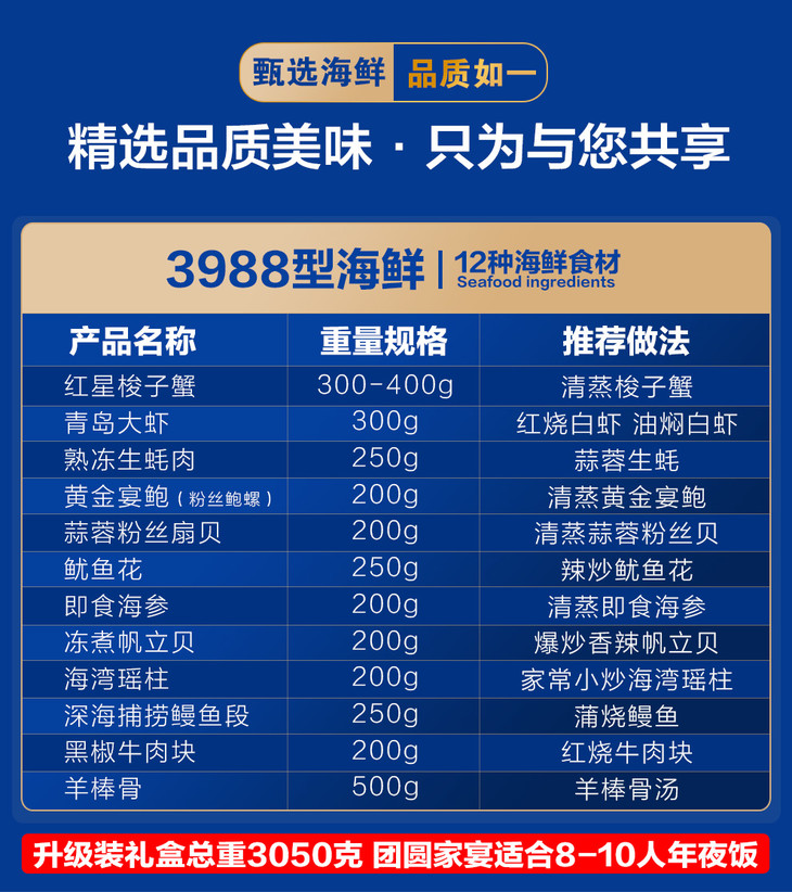 皇家船长国产海鲜礼盒12种食材3988型3050g(T)