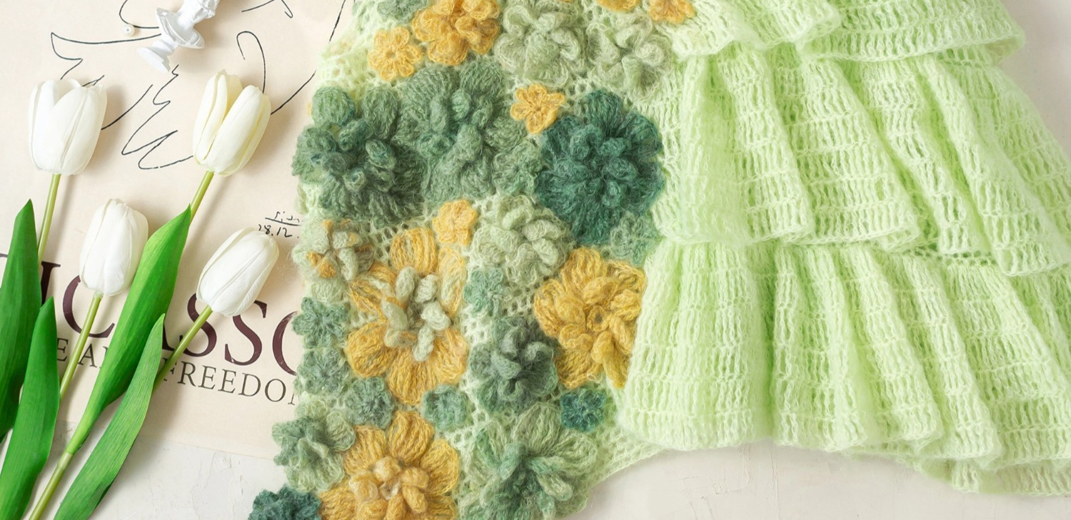 苏苏姐家花朵吊带手工diy编织钩针马海毛毛线团自制衣服材料包
