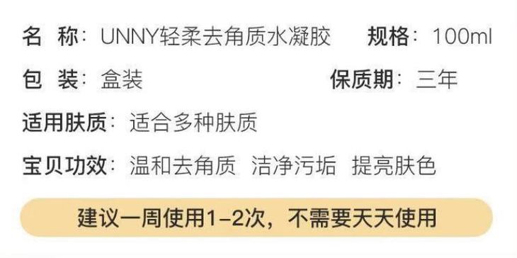 。【化妆品】*unny凝露去角质啫喱清洁收缩毛孔面部去黑头全身去死皮膏120g